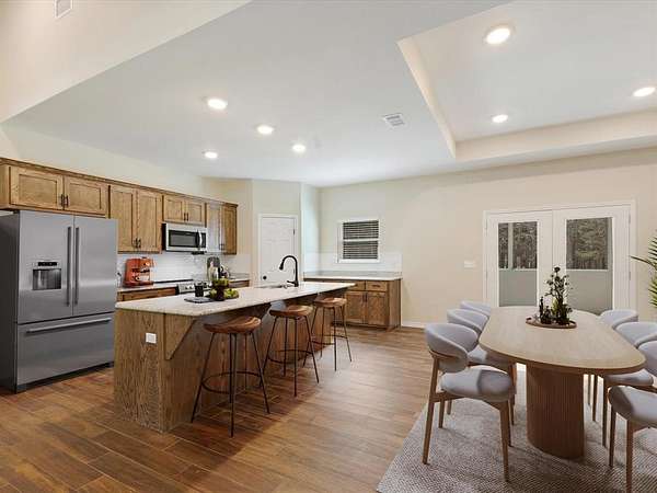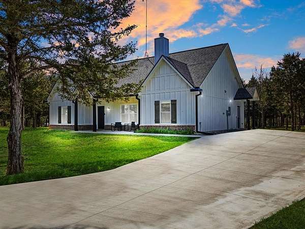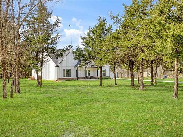 Escape to the peaceful charm of country living with this beautiful modern farmhouse nestled on 4.94 wooded acres. This 3-bedroom, 2-bath home features an open floor plan filled with warmth and character, highlighted by a cozy wood-burning fireplace and inviting country touches throughout. The kitchen is designed for both function and style with a large island, granite countertops, and an oversized pantry, while the spacious utility room provides added convenience.The private primary suite includes a walk-in closet and comfortable retreat space. Step outside to the perfectly sized screened-in porch where you can relax and enjoy the scenic views and quiet surroundings. The property also includes a detached 2-car garage with an additional carport for extra parking or storage. The area around the home is fenced and gated, offering added privacy and security. Surrounded by mature trees, this property offers the perfect blend of peace, comfort, and natural beauty while still providing the modern farmhouse lifestyle you’ve been looking for.