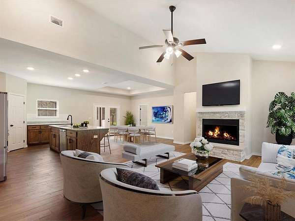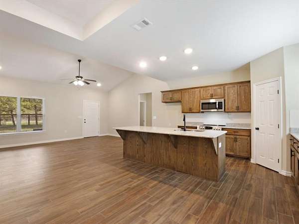 - Built-In Features, Eat-In Kitchen, Granite Counters, Kitchen Island, Open Floorplan, Vaulted Ceiling(s)