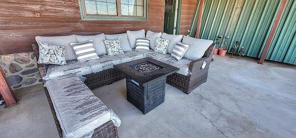 GPS works great! Or, Continue driving South through Justiceburg towards Snyder on Hwy 84 and continue another about another 7.5 miles. Turn left (East) on County Road 378 and travel 7.5 miles (dirt roads). Turn left on County Road 349 and you'll have to enter through the locked gate with the entry code. Take your first left onto Fagan Road and follow the road around for 0.8 miles and the house will be on your left.
