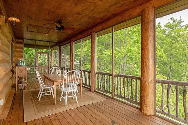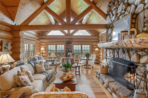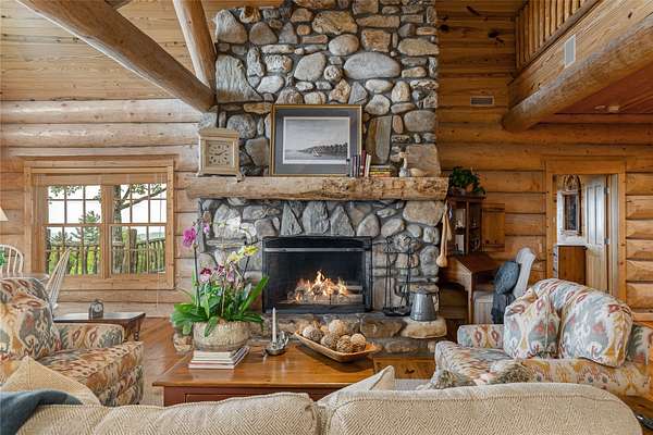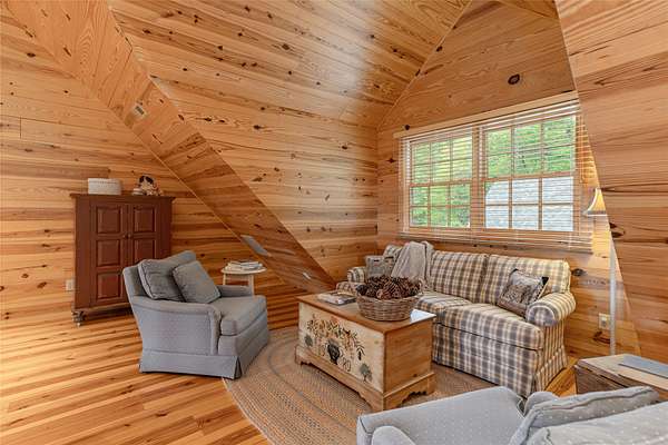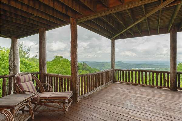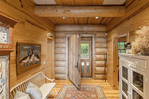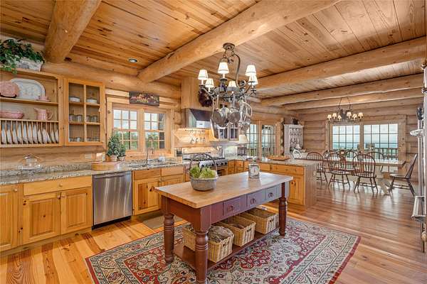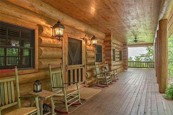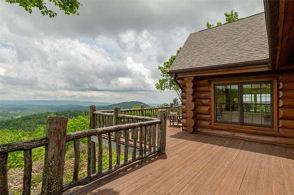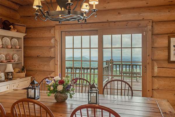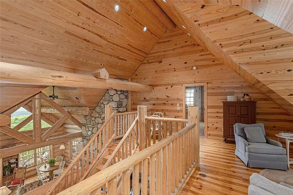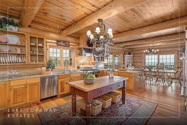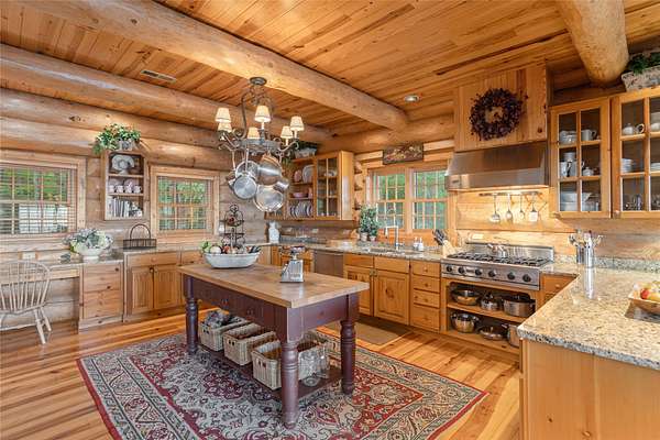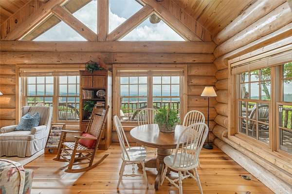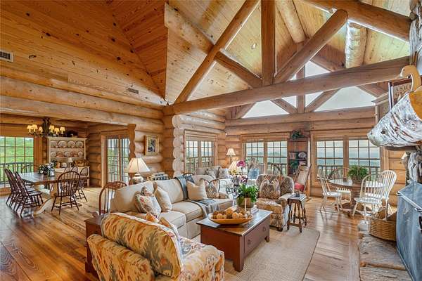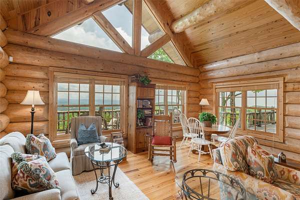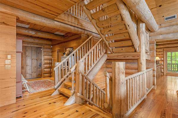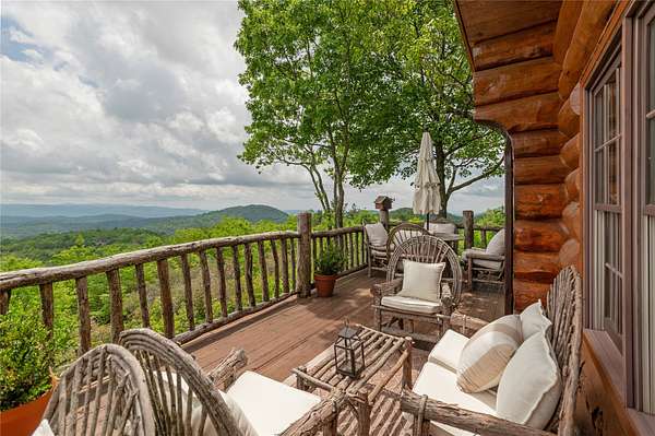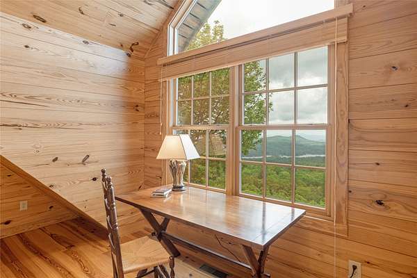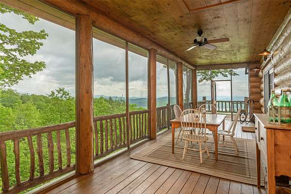 Perched atop over 12 secluded acres, this majestic log cabin estate is a rare and timeless offering - a legacy property where generations have gathered to celebrate life, love, and the breathtaking beauty of the Blue Ridge Mountains and Lake Toxaway. Every room, beam, and view tells a story. Thoughtfully crafted with intention and care, the home features five spacious ensuite bedrooms, each oriented to capture stunning vistas. The main-level primary suite is a serene retreat, complete with an impressive stone fireplace and direct access to outdoor tranquility. The main and lower-level living areas feature impressive wood-burning stone fireplaces and are framed by walls of windows that flood the interior with natural light, showcasing the expansive views. A spacious upstairs loft offers a quiet sitting area, while the lower level includes a flex room and workshop for hobbies or additional living space. At the heart of the home is a chef's dream kitchen featuring a Sub-Zero refrigerator, a Viking gas range, a Bosch dishwasher, and a large prep island. The kitchen seamlessly connects to the adjacent dining area, powder room, and laundry room. Ideal for entertaining guests or hosting intimate family gatherings, this home was designed for making memories. Outside, a private driveway leads through a laurel gate and over a picturesque bridge to a cascading waterfall. Multiple oversized decks, a screened-in sunroom, and a generous carport leading to a covered front porch offer abundant outdoor living space to enjoy the crisp mountain air and gaze at the mountains and moonrises. This remarkable estate, now being offered for the first time, is impeccably maintained, partially furnished, and offers enduring hardwood and large stone flooring, oversized bathrooms, and quality craftsmanship throughout. Located within the sought-after Lake Toxaway Estates community and just under an hour from Asheville Regional Airport, this home is ideally situated to enjoy the nearby mountain communities of Brevard, Sapphire, Cashiers, and Highlands. More than a home, this is a rare opportunity to create a legacy in one of Western North Carolina's most treasured settings.