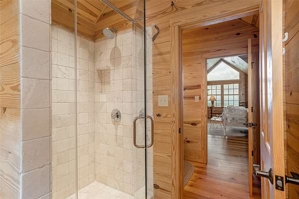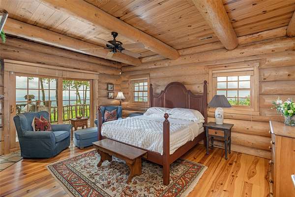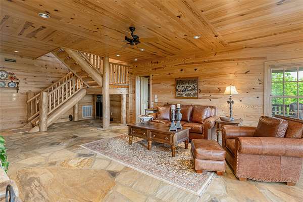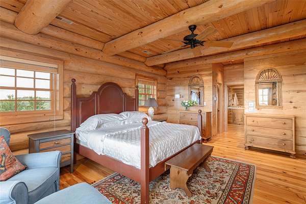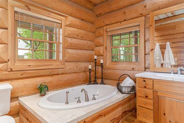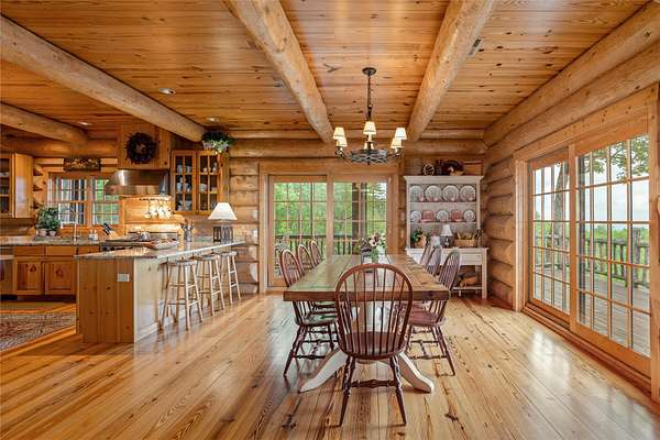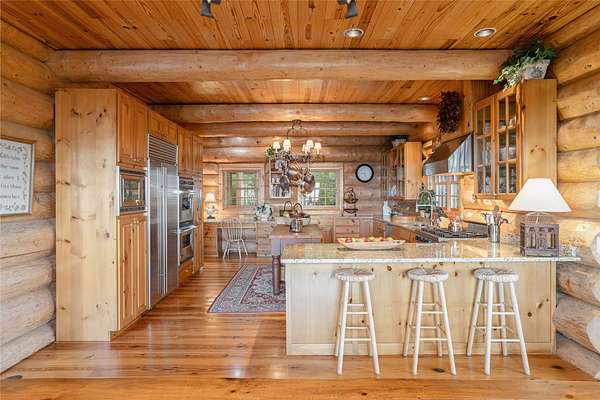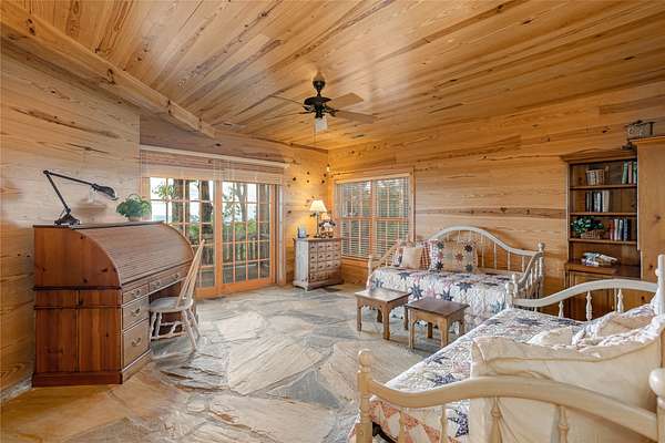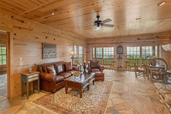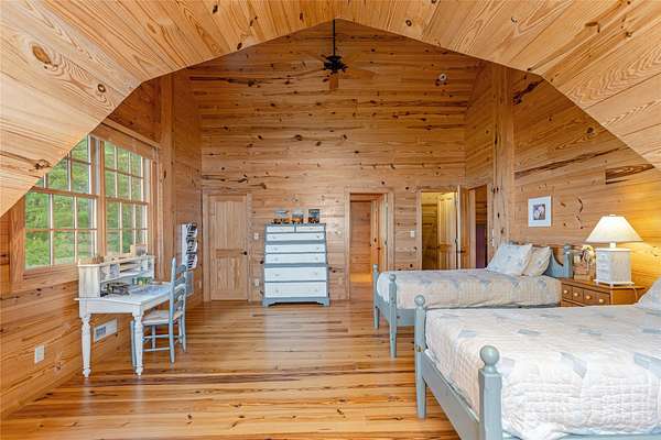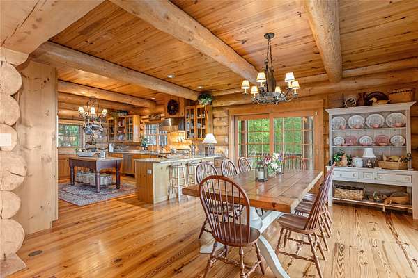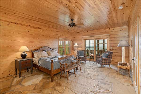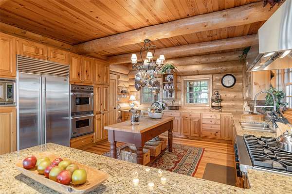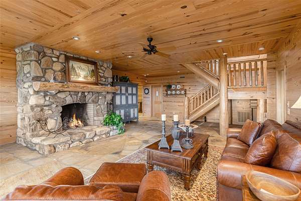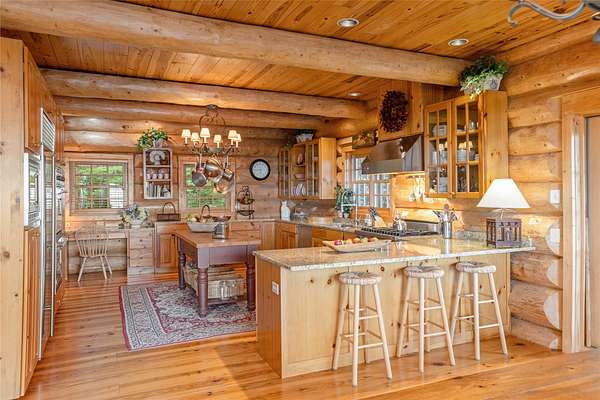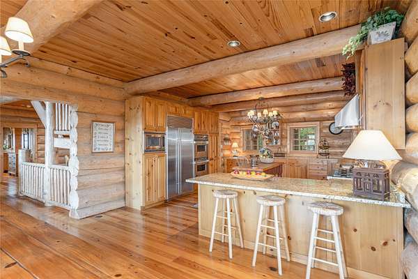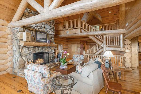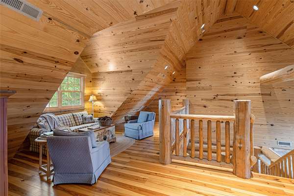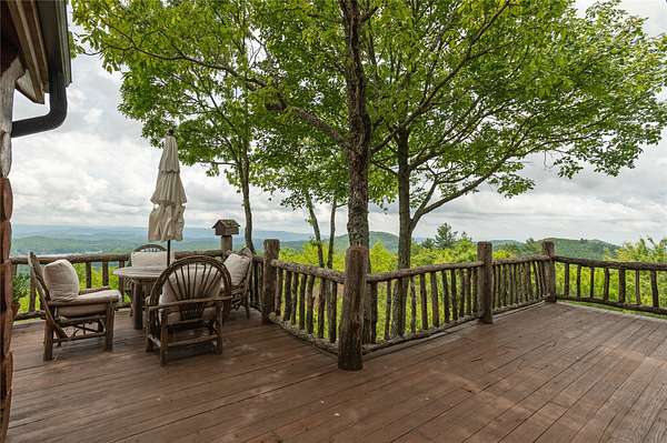 Perched atop over 12 secluded acres, this majestic log cabin estate is a rare and timeless offering - a legacy property where generations have gathered to celebrate life, love, and the breathtaking beauty of the Blue Ridge Mountains and Lake Toxaway. Every room, beam, and view tells a story. Thoughtfully crafted with intention and care, the home features five spacious ensuite bedrooms, each oriented to capture stunning vistas. The main-level primary suite is a serene retreat, complete with an impressive stone fireplace and direct access to outdoor tranquility. The main and lower-level living areas feature impressive wood-burning stone fireplaces and are framed by walls of windows that flood the interior with natural light, showcasing the expansive views. A spacious upstairs loft offers a quiet sitting area, while the lower level includes a flex room and workshop for hobbies or additional living space. At the heart of the home is a chef's dream kitchen featuring a Sub-Zero refrigerator, a Viking gas range, a Bosch dishwasher, and a large prep island. The kitchen seamlessly connects to the adjacent dining area, powder room, and laundry room. Ideal for entertaining guests or hosting intimate family gatherings, this home was designed for making memories. Outside, a private driveway leads through a laurel gate and over a picturesque bridge to a cascading waterfall. Multiple oversized decks, a screened-in sunroom, and a generous carport leading to a covered front porch offer abundant outdoor living space to enjoy the crisp mountain air and gaze at the mountains and moonrises. This remarkable estate, now being offered for the first time, is impeccably maintained, partially furnished, and offers enduring hardwood and large stone flooring, oversized bathrooms, and quality craftsmanship throughout. Located within the sought-after Lake Toxaway Estates community and just under an hour from Asheville Regional Airport, this home is ideally situated to enjoy the nearby mountain communities of Brevard, Sapphire, Cashiers, and Highlands. More than a home, this is a rare opportunity to create a legacy in one of Western North Carolina's most treasured settings.