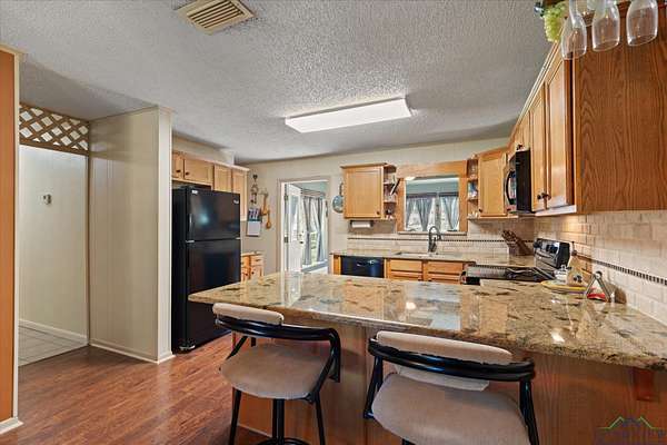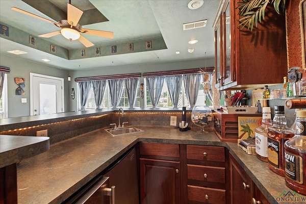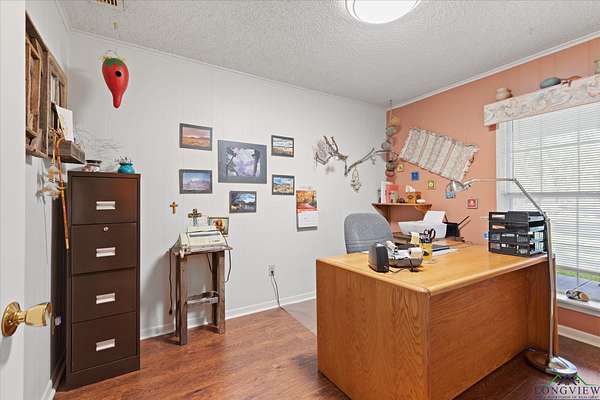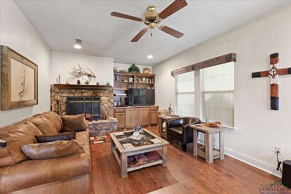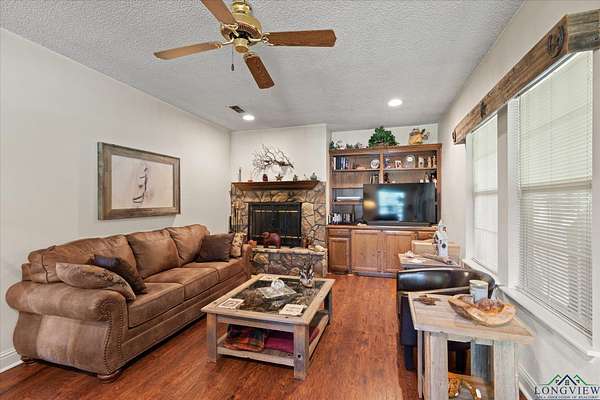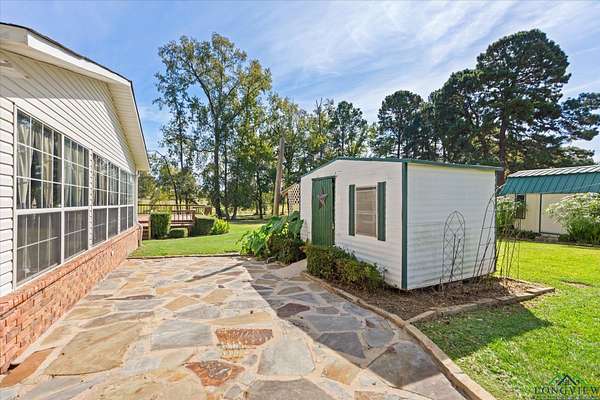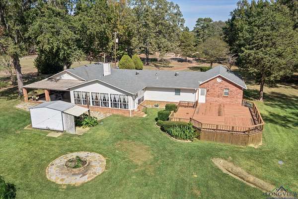 Country charm, modern comfort, and room to roam! This well-loved brick home sits on 3.39 unrestricted acres in Kilgore ISD, has been meticulously maintained by the same owners for 43 years, and it shows! You'll find thoughtful updates throughout, including, two updated HVAC units, granite countertops in the kitchen, large pantry, and new laminate flooring. The layout features 4 bedrooms, 2.5 baths, and a spacious master suite addition complete with a private bath and walk-in closet. Flooded with natural light, the master suite offers plenty of room to relax and unwind. A bright sunroom with a wet bar is perfect for entertaining, complete with an undercounter refrigertor and ice machine. The nearby laundry room and half bath make it as functional as it is inviting. Step outside and enjoy the peaceful setting with a gated entry, fully fenced acreage, and plenty of space for pets, a garden, or yes... bring your chickens! Two storage sheds and a covered parking spot for your motorhome add even more flexibility. A large deck, flagstone patio, and firepit make it easy to enjoy those beautiful East Texas nights. Experience the best of country living with the convenience of Henderson, Kilgore, and Longview just minutes away. This property has been lovingly cared for and is ready for its next chapter.