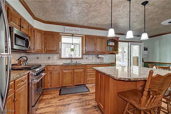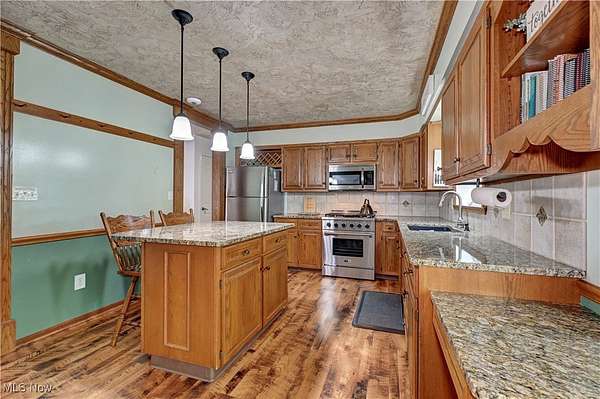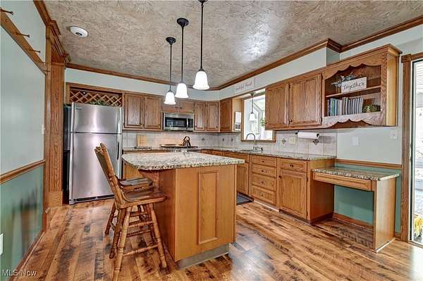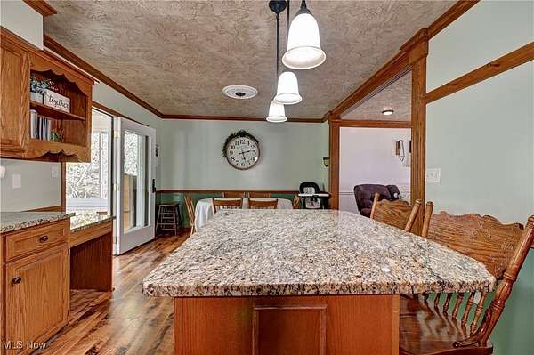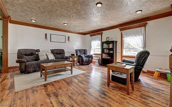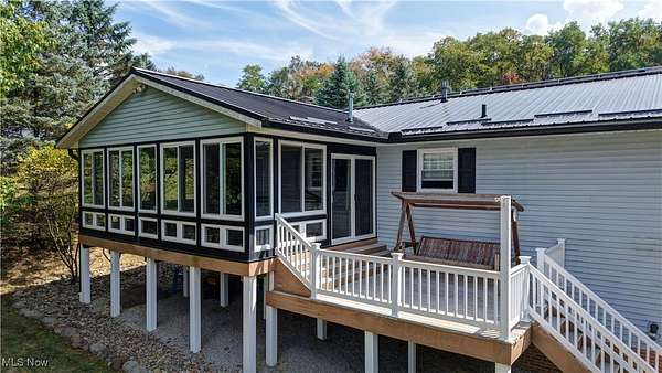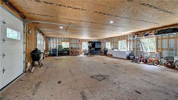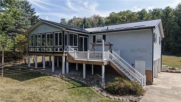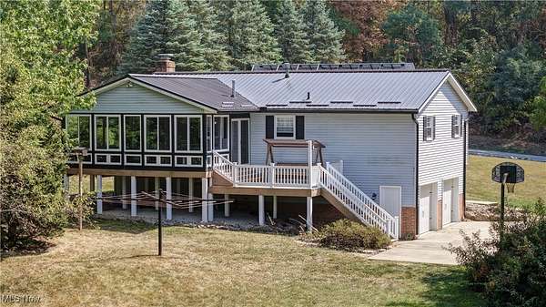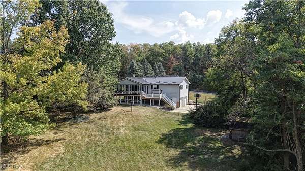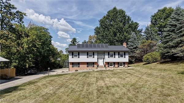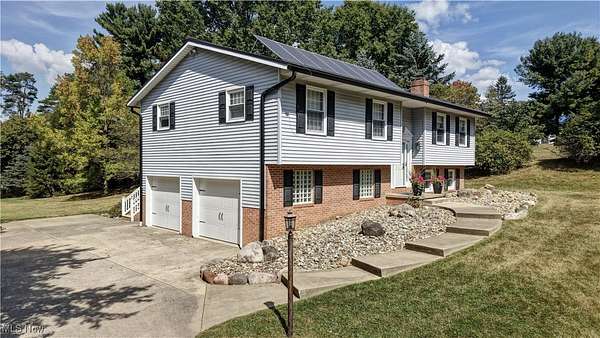 Auction date is Thursday October 16th. Located on the outskirts of the Village of Mt. Eaton, this property offers the best of both worlds-peaceful rural surroundings with the convenience of village living. The raised ranch home, built in 1988, has been very well maintained and provides 1,652 sq. ft. of living space on the main floor. Inside you'll find a kitchen with an island, dining area, living room, three bedrooms, a full bath, and a bright all-seasons room overlooking the private backyard. The lower level adds a family room with a fireplace, a full bath, laundry area, and a two-car garage. The exterior features brick and vinyl siding with a durable metal roof, while utilities include city water and sewer, natural gas furnace, central air, and solar systems powering the home with the option of electric line supply. A 28'x48' detached garage, built in 2019 on a Block foundation, offers two overhead doors on the main level and barn space below. Outdoors, you'll also enjoy a stocked pond, garden area, storage shed, and a secluded backyard-making this a well-rounded property with plenty to offer.