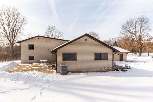 Set on a private, wooded parcel, this thoughtfully maintained 4-bedroom, 2.5-bath home offers a rare combination of space, modern updates, and everyday livability. The open- concept kitchen and living area is designed for both daily living and entertaining, featuring marble countertops, modern appliances, abundant cabinetry, generous pantry storage, and ample prep space. Oversized windows, skylights, and sliding glass doors fill the great room with natural light and connect the home to the surrounding landscape. The flexible layout allows space for a home office, small gym, or creative studio. The upstairs primary bath includes a jetted tub for added comfort. Extensive updates provide peace of mind, including a new roof on the home and pole barn (2024), replaced HVAC heat exchangers, newer water heater (2024), updated mechanicals, modern water filtration, and an owned propane tank. Situated on approximately five acres, including wooded acreage for privacy, the property also features a substantial pole barn with RV-ready 220V hookups, oversized storage bays, a loft with powered lift, and commercial-grade electrical service. Two patio areas and an expansive front deck offer inviting outdoor living and beautiful Michigan sunset views. Homes offering this level of condition, acreage, functionality, and flexibility are increasingly rare.