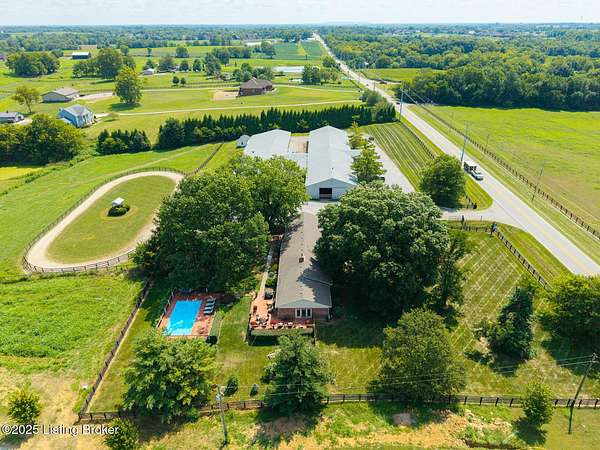 The world famous Premier Stables is now available for new owners. The Hall of Fame owners are ready to pass the torch and this exquisite equine facility on. The farm consists of 22.79 acres all four board fenced with beautiful paddocks. The indoor riding arena is 200x60 lighted with new LED lights and kept to the highest of standards. The updated lounge area looks into the riding arena. 32 oversized stalls are in the show area of the facility, heated, and with waterers, another 11 stalls are in the teaching area of the facility. 2 large tack room, saddle racks, men's and woman's restrooms, storage rooms, wash room and office area. There is an outdoor riding arena as well. The property has the main house which is 4 bedrooms and 2 baths and a guest house that is 2 bedrooms and 2 ba. baths. The main home has a beautiful open family room and large kitchen with a double-sided fireplace. The primary suite has walk in closets and a large primary bathroom. Walk out to the pool area that overlooks the farm. The guest house is like new and has a fire place and large open floor plan. The location of this equine farm is prime just in between Simpsonville and Middletown close to the Shelby/Jefferson County line. This is a rare opportunity to own a piece of history.