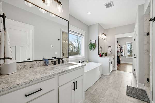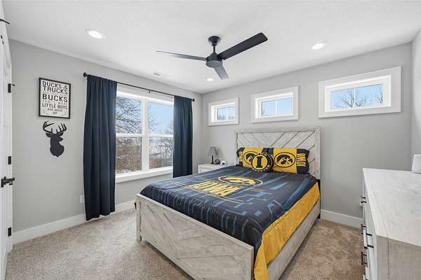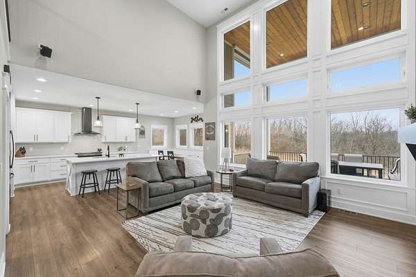 Experience refined living on 4.23 private acres backing to trees with quick access to Bondurant and Ankeny. This high-end residence offers elevated finishes including quartz countertops, soft-close cabinetry, solid wood doors, detailed trim, and LVP flooring. The chef-inspired kitchen features a hidden walk-in pantry with grocery drop, beverage cooler, custom shelving, and a breakfast nook. The great room showcases a stone fireplace and picture windows with serene views. The luxury primary suite offers heated tile floors, a soaking tub, walk-in shower with 3 showerheads, large closet, and direct laundry access. Upstairs are 3 spacious bedrooms and 2 baths, including an en-suite. The walkout lower level includes a full bar, fireplace, safe room, additional bedroom, and patio. A heated epoxied garage, tankless water heater, 3-zone HVAC, composite deck with sun screen, and space for a pool or outbuilding complete the home. This residence offers every detail you'd hope for in a high-end build. It's truly one you must experience in person.