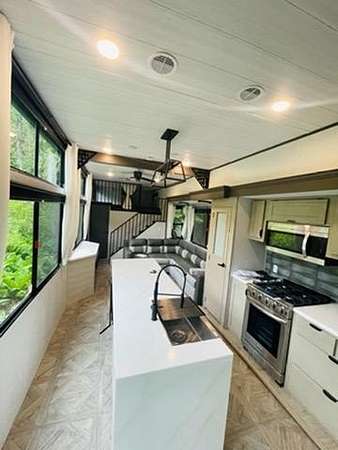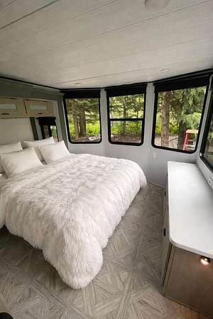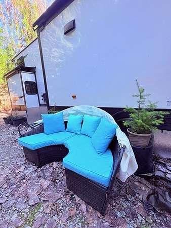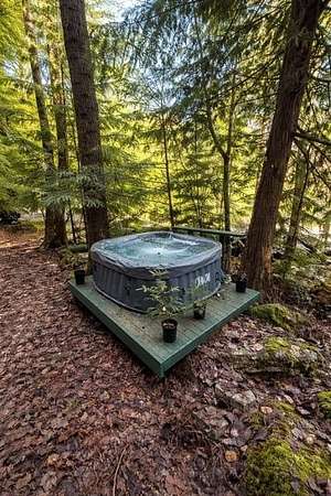 Power installed on this beautifully manicured 10-acre forest retreat! Features include WiFi/satellite, new rocked driveway, prepared site pad, custom cedar privacy gate, and a 1 bed/1 bath 2024 luxury trailer with stainless appliances, marble counters, washer/dryer, 2 lofts, fireplaces, and TVs. Enjoy a year-round creek, ponds, trails, wildlife, hunting, hot tub, firepit, and multiple sitting areas plus a cleared entertaining space. Includes chicken coop, greenhouse with 30 raised beds, orchards, garden areas, 20' custom houseboat on trailer, generator, and snowblower. Adjacent to approx. 6,000 acres of private timberland with potential recreational access. Buyer to verify. Owner occupied. Showings by appointment only with agent. Natural Spring supplies water.