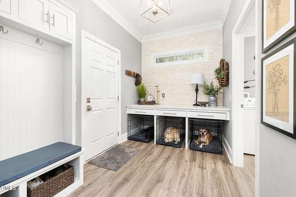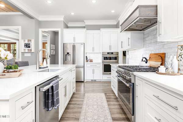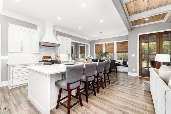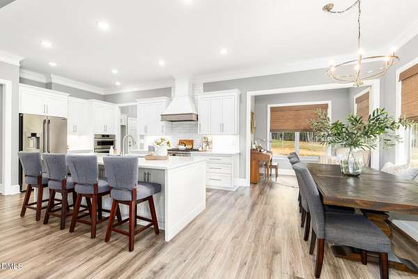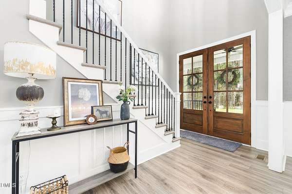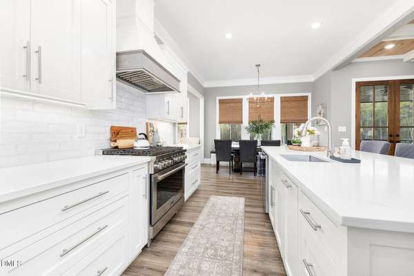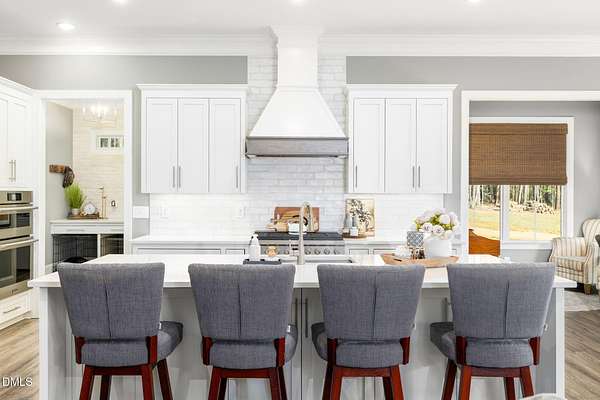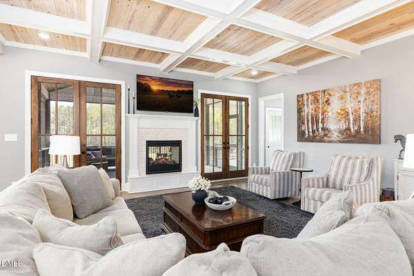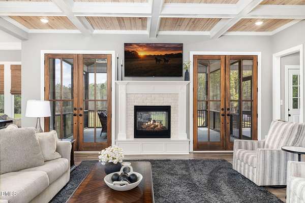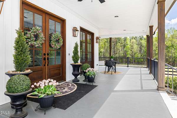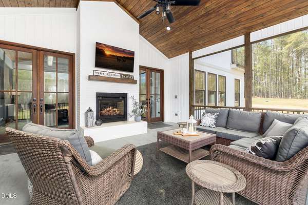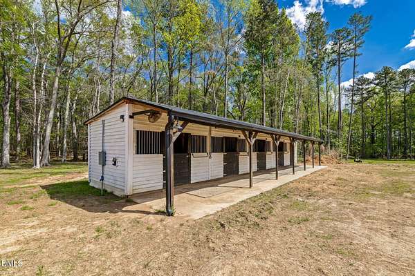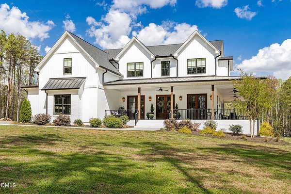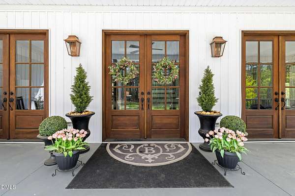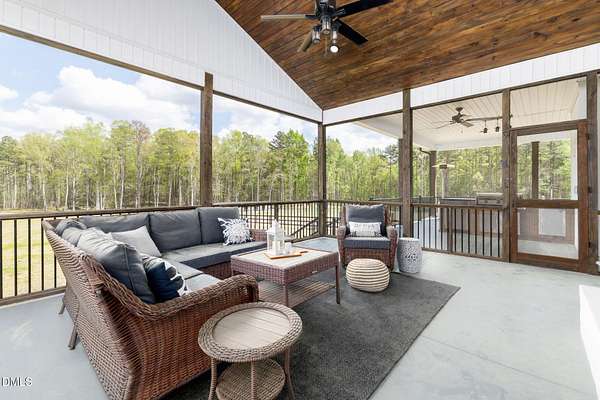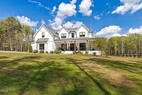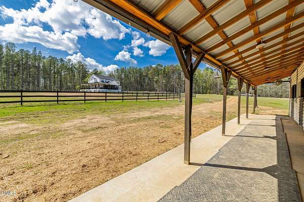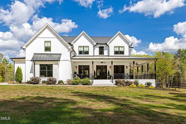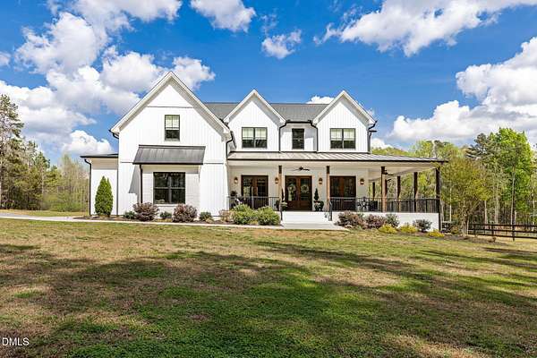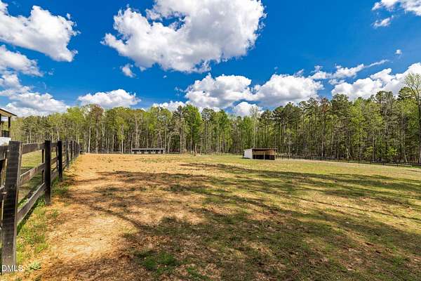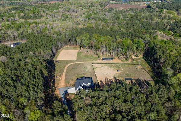 Set on 25 private acres with approximately 6 acres cleared, this exceptional modern Craftsman/Farmhouse equestrian estate offers a rare blend of refined luxury, intentional design, all within an ideal location under 45 minutes to Durham, under an hour to Raleigh and RDU, and approximately 20 minutes to Clarksville and Kerr Lake/Buggs Island. The custom-built 4,086 SF residence showcases elevated craftsmanship throughout with 10 foot ceilings on the main level, 9 foot ceilings upstairs, extensive trim work including double crown molding and oversized baseboards, coffered and tray ceilings, and thoughtfully curated finishes that reflect the timeless character of Craftsman design paired with the clean, modern appeal of farmhouse styling. A welcoming mudroom with brick feature wall, built-ins, and cubbies sets the tone for style and function. At the heart of the home, the chef's kitchen is designed for both everyday living and entertaining, featuring a large island with additional storage, Frigidaire Professional appliances including a dual fuel range, wall oven, microwave, dishwasher, and full-size refrigerator, quartz countertops, custom hood, under cabinet lighting, and a spacious walk-in pantry. A dedicated dry bar and beverage station seamlessly connects the kitchen and dining area, while a custom built-in banquet adds charm and practicality. Indoor and outdoor living are seamlessly integrated with 5 by 8 exterior double doors leading to an expansive wrap around porch, a screened porch with cathedral tongue and groove ceilings, and a stunning double sided gas fireplace shared with the main living area. The fully equipped outdoor kitchen features a grill, sink, refrigerator, leathered granite countertops, bar seating, and TV setup, creating an ideal space for year round entertaining. The home offers 4 bedrooms with en-suite access, including a luxurious primary suite featuring a tray ceiling, custom feature wall, and private sitting area with electric fireplace. The primary closet also includes a secondary laundry area for added convenience. Two additional bedrooms share a Jack and Jill bath, while another bedroom enjoys its own private bath. All bathrooms feature tiled surrounds and custom niches. Two dedicated offices on the main level provide excellent work from home functionality and may also serve as flexible sleeping spaces if desired, offering additional versatility for guests or extended stays. A standout feature of the home is the custom steam room, finished with striking blue tile and built-in bench seating, creating a serene, spa-like retreat that rivals high end commercial wellness spaces. Additional highlights include a tiled dog wash in the garage, a 2.5 car garage with ceiling mounted storage and space for an additional refrigerator, tankless water heater, whole house Generac generator, buried 1000 gallon propane tank, custom lighting and blinds throughout, and a CPI security system. Equestrian amenities are equally impressive and thoughtfully designed. The property features a fenced pasture with multiple access gates, a 12 x 24 three sided run-in shelter, hay storage, and multiple yard hydrants with troughs. The 4 stall barn with 12 x 12 stalls sits on a concrete slab and includes an insulated tack room with saddle racks, stall mats, electricity with lighting in each stall and aisle, high velocity fans, Shoofly fly spray system, and water access. A 120 x 230 riding arena has been laid out and partially prepared, offering a strong foundation for completion. Trails throughout the property provide additional riding and recreational opportunities. A truly rare opportunity to own a turnkey luxury farmette that seamlessly blends high end Craftsman/Farmhouse living with equestrian functionality. For those seeking to expand their footprint, an additional adjoining 25 acre parcel may be available, offering potential to create a significantly larger private equestrian estate and establish a tru