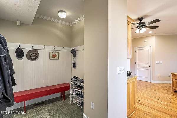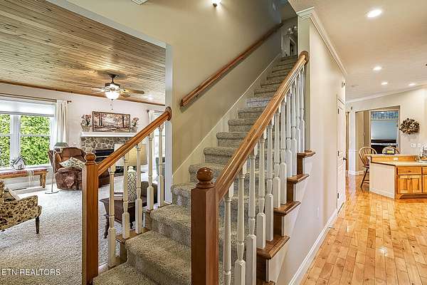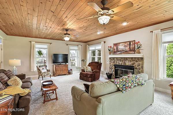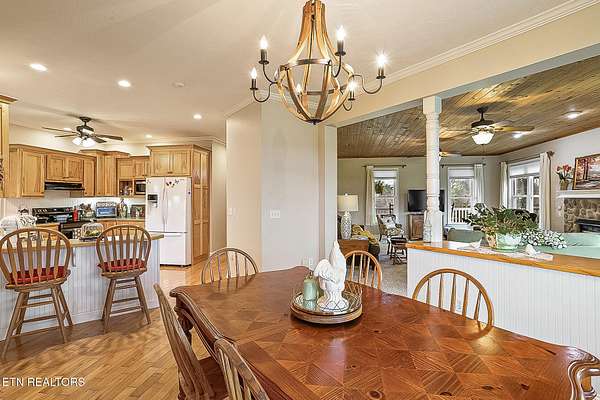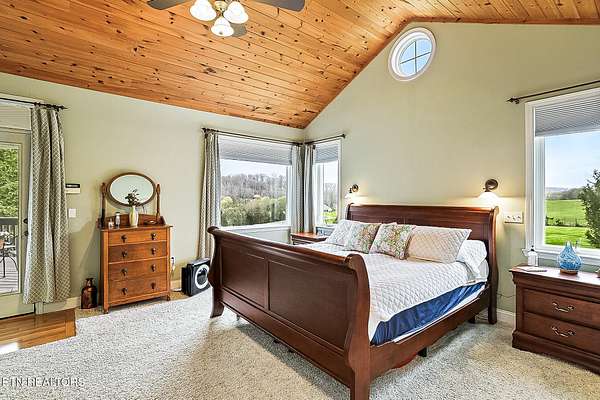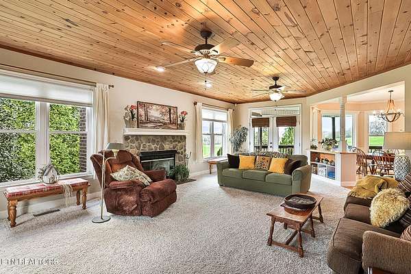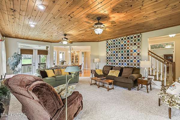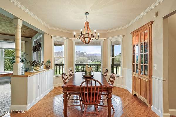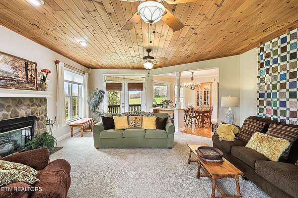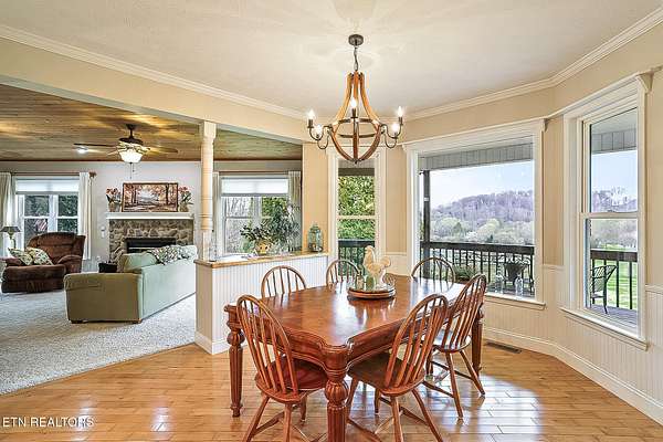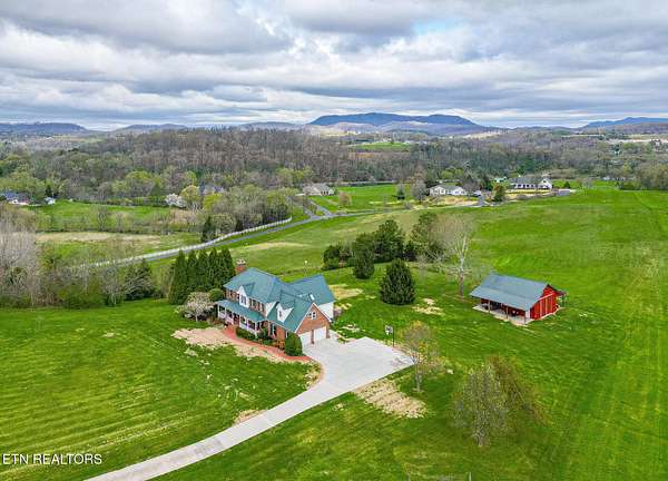 FIRST TIME OFFERED ON MARKET. Custom home sits on 11.43 acres of beautiful East Tn rolling/level fields. Property also has 115 ft of Holston River frontage and qualifies for dock upon TVA Permit. Love the front porch and as you enter home, you find a large living area with a wood burning fireplace (currently has gas logs) , open concept to formal dining and both rooms have oversized windows to take in country views plus views of House Mountain State Natural Area. Kitchen offers peninsula -breakfast bar. A large mud room and large laundry room found off from kitchen area. Master Suite has vaulted ceiling and again oversized windows to allow mountain views. Special transoms found on first floor with stained glass and accent window that add character. Upstairs you have three bedrooms and large bonus room. A Lower level rec room, hobby room, flex room and full bath plus a storm shelter room. So many special features that enhance this home : Geothermal Air Conditioning with hot water preheat-rapid hot water system. Laundry chute from second floor to main floor laundry room. Custom built kitchen and bathroom cabinets, built-in China Cabinet in dining room. Central vacuum, wired security system, data lines. and whole house surge protector. Meets TVA Energy/Right Insulation Program. Built in bookcases in several rooms. You also have a detached workshop/garage 30x36 with concrete floors and 12' x 14' wide doors with 12' overhangs on each side. and has Water & electrical connections plus gutter guard. Property has apple, pear trees and grape/Muscadine Trellis. More special features are available upon request. Located with 1 mile of Ruggles Ferry Golf Course, 15 minutes to Knoxville and 30 minutes to Pigeon Forge. The Great Smoky Mtns are close by for nature lovers.