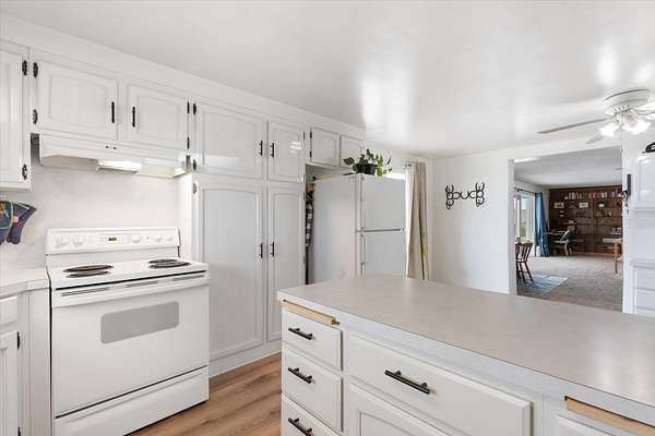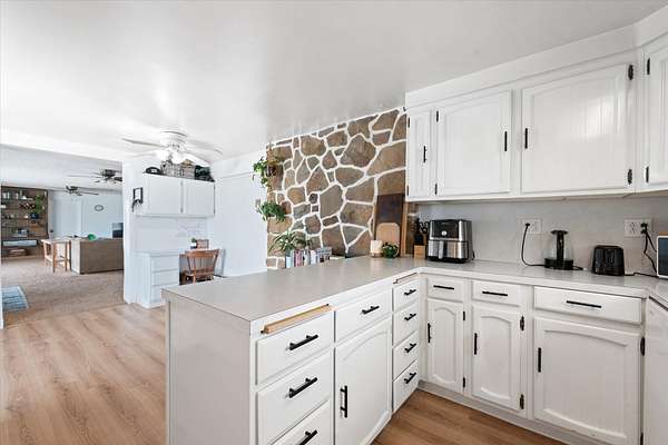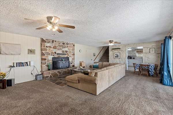 The main home spans 2,160 sq ft and features 2 bedrooms and 2 bathrooms. Recent upgrades include new kitchen flooring, updated carpet, and fresh paint throughout. While primarily single-story, the home includes a primary bedroom and bathroom located upstairs. Enjoy scenic views of the Snake River Canyon from the covered patio.