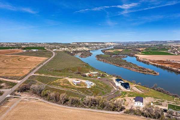 Perched atop a bluff, this stunning 5-acre parcel boasts panoramic views of the Snake River and Owyhee Mountains. The level building site includes two homes and multiple outbuildings, offering versatile living and storage options. Enjoy shared river access via a written easement, including a shared dock on the Snake River for fishing, water sports, and recreational activities.