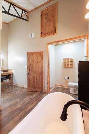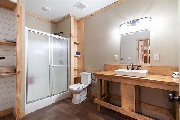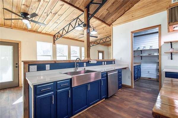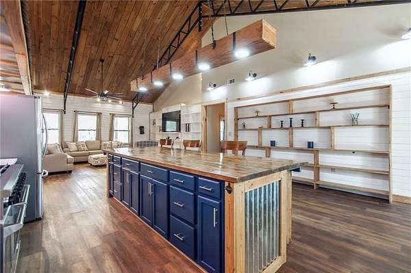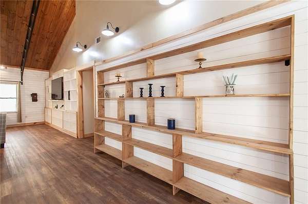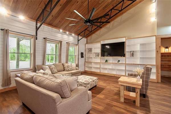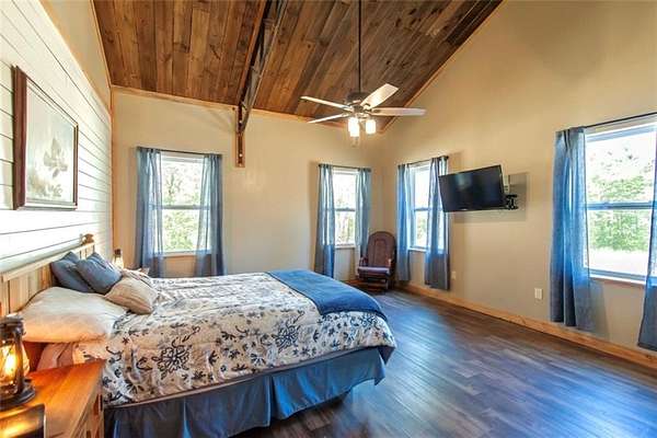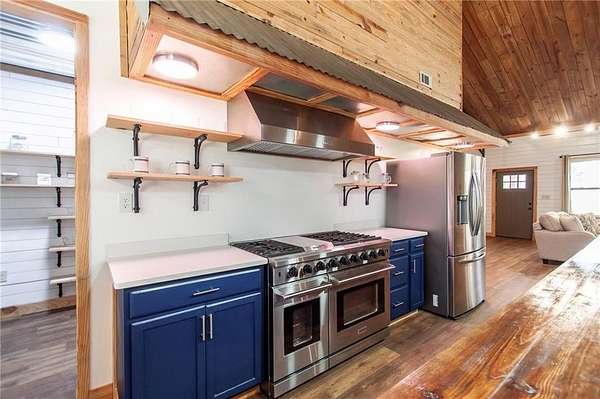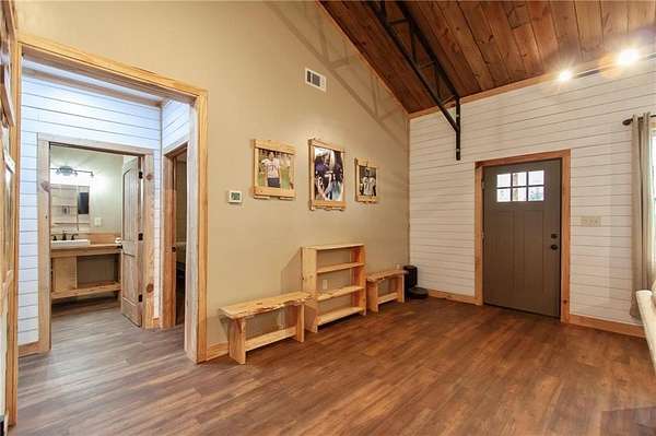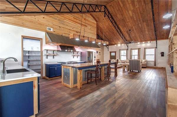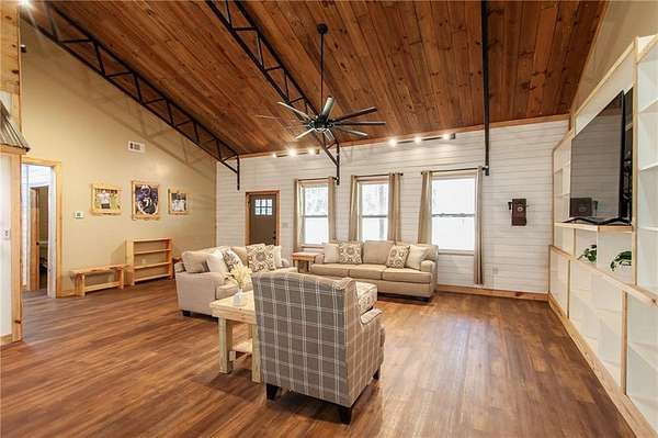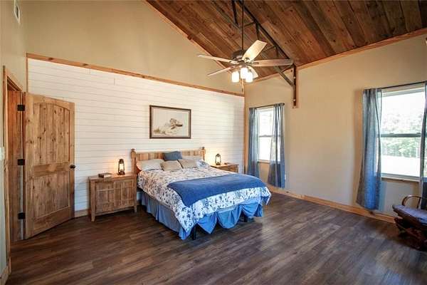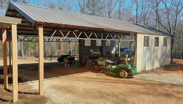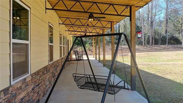 3,000 ft.2 on 13.25 private acres along the Lake Martin corridor with no zoning restrictions and room to build, expand, or operate without limitation. Set back from Hwy 49 and surrounded by hardwood and pine, the home offers privacy without sacrificing access. A wide, shaded front porch leads into vaulted wood ceilings framed by exposed steel trusses and an open living area that blends industrial strength with warm, natural texture. The kitchen features a 42 inch commercial gas range with griddle, oversized vent hood, quartz countertops, and a layout designed for serious use. Constructed with 2x6 exterior framing (for added structure, insulation and energy efficiency), full wood structural members, a fully decked roof, spray foam insulation, dual HVAC systems, and additional interior sound insulation, this home was built with durability and long term performance in mind. The primary suite occupies its own wing and includes two large walk in closets, an expansive bath with oversized walk in shower and standalone tub, and a private laundry room. On the opposite side, two additional bedrooms, a full bath, half bath, and second laundry space provide flexibility for guests, multigenerational living, or future configuration. Outside, cleared acreage surrounds the home with a looping drive, two car carport and workshop space, wooded trails, a creek, and level ground suitable for additional structures. Frontage along StillWaters Hwy adds long term strategic value for personal, recreational, or entrepreneurial use.