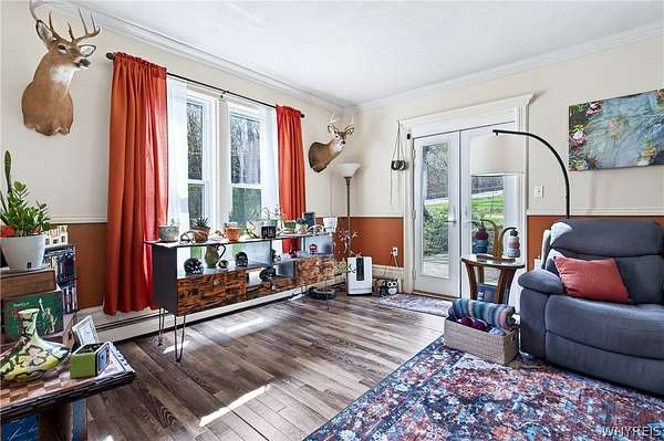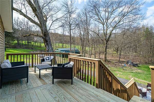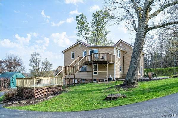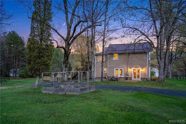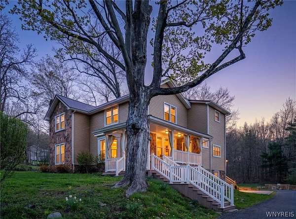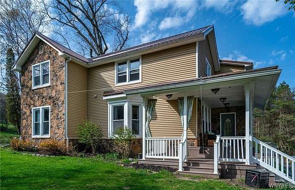 Welcome to 8666 Lower East Hill Rd, where timeless farmhouse charm meets thoughtful modern updates on nearly 3 acres of picturesque Colden landscape. Perfectly situated just down the road from Buffalo Ski Club, this move-in-ready home offers the ideal blend of comfort, space, and scenic beauty. From the moment you arrive, the inviting front porch with new Trex decking sets the tone for relaxed country living. Step inside through the mudroom and into a beautifully updated kitchen featuring granite countertops, radiant in-floor heating, and abundant cabinet space. The kitchen flows seamlessly into a bright dining area filled with natural light, creating an ideal setting for everyday living and entertaining. At the heart of the home, you'll find both living and family rooms, offering versatile spaces for gathering or unwinding. French doors lead to a stunning new aggregate patio, perfect for enjoying the peaceful surroundings. The first floor also includes a flexible bedroom that can easily serve as a home office, playroom, or guest space. Upstairs, character and functionality continue with an open loft area and an expansive second-floor laundry room. Sliding glass doors open to an elevated deck with sweeping views of the property-your own private retreat. The spacious primary suite features a beautifully updated KAZ Brothers ensuite bathroom complete with heated floors and a luxurious jacuzzi tub. Two additional bedrooms and another full bath complete the second level. Major updates provide peace of mind, including a metal roof, updated siding, newer boiler, and tankless hot water heater. With nothing left to do but move in, this property offers a rare opportunity to enjoy modern living in a serene, rural setting. Offers, if any, will be reviewed on 5/5/2026 at 5pm Open house will be Sunday 5/3 from 1-4pm