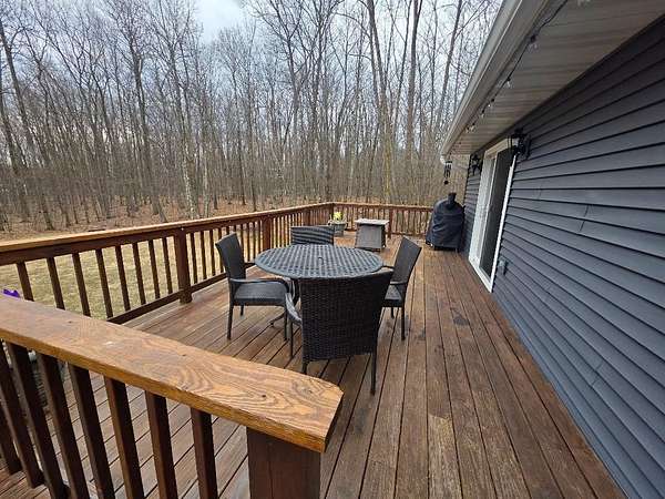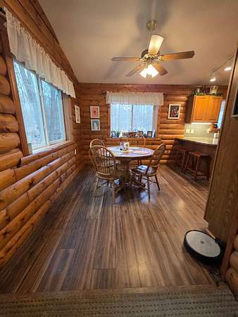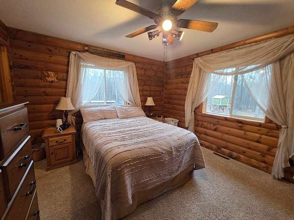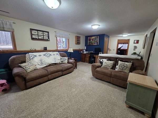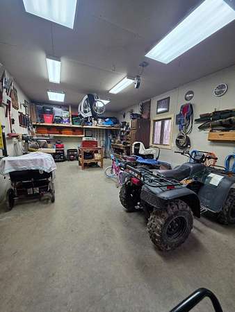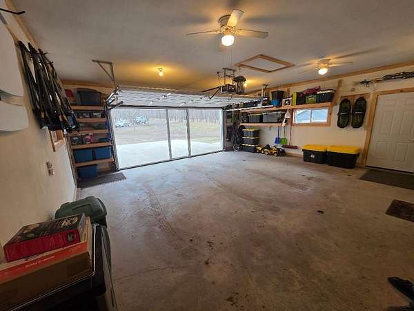 This meticulously maintained country home boasts four bedrooms and three bathrooms, making it an ideal residence for families. Recent upgrades include new siding and a new roof. Situated on a double lot, the property offers a secluded and private atmosphere, enhanced by a large detached workshop and a two-car attached garage. The park-like setting features mature trees and a spacious deck that overlooks the expansive backyard, attracting an abundance of wildlife. Additionally, there is a woodshed and creatively arranged, established raised garden beds. Inside, the open floor plan encompasses a finished basement with a fireplace, providing a generous family room and ample storage. The home is in move-in condition and includes an insulated and heated workshop. Conveniently located near several lakes and cross-country ski trails, this property represents a remarkable opportunity for family living.