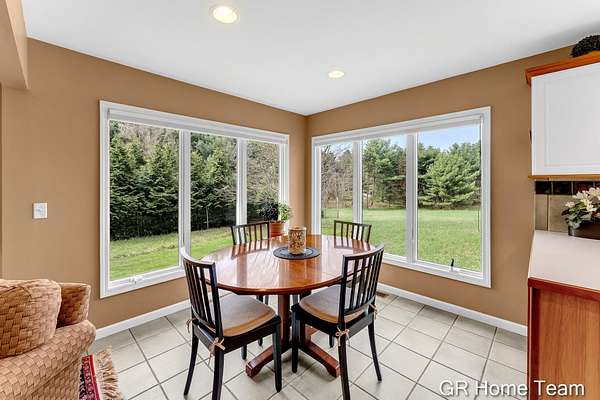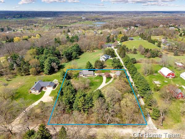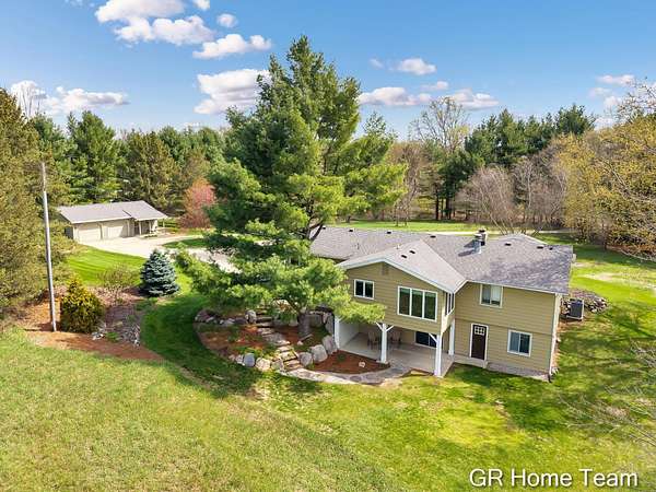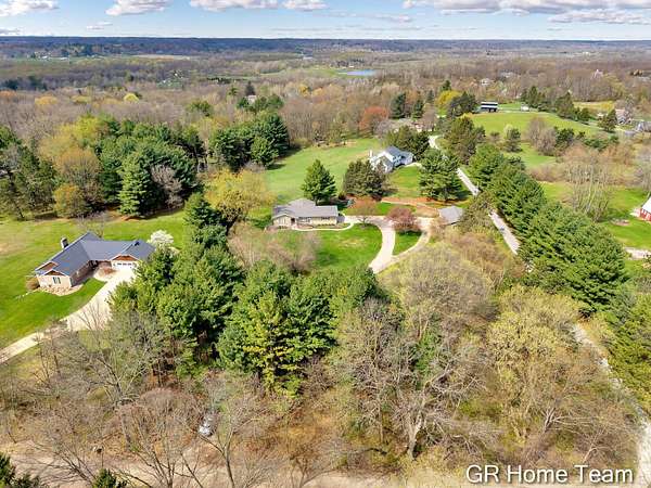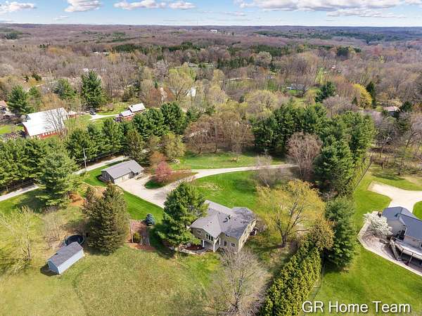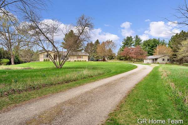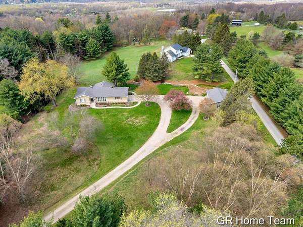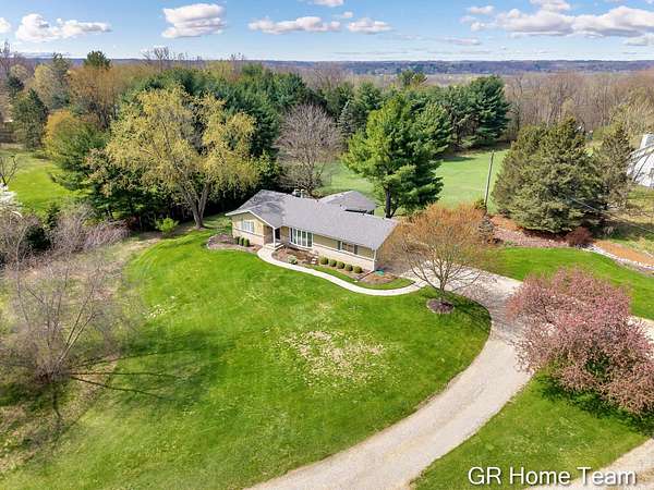 The most idyllic setting on 2.2 acres with circle driveway and outbuilding - a rare find in Forest Hills. Brighten your mood with a peaceful 5 min drive outside downtown Ada to this quiet retreat. Solid high-quality construction, ranch style home with new kitchen and dining addition added in 2005. Spacious and light filled, with room to expand and update, all while enjoying spring blooms and your hobbies on this property. Many updates including NEW roof, furnace, AC, appliances, and water softener. The home features an attached 2 stall garage plus a huge 2.5 stall outbuilding with additional finished hobby room with wood stove. Main floor of home offers 2 bedrooms and generous living spaces including a hearth room with fireplace off the kitchen. Close to schools. Offers due Tue 4/28 noon.