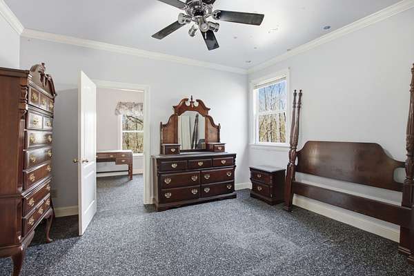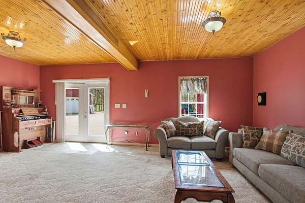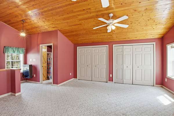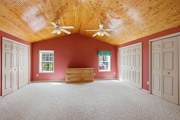 For those seeking a true compound, the detached guest house is a masterpiece of open-concept design and unique woodworking. The rear sunroom, complete with a wood-burning stove for heating and ambiance, creates a rustic yet refined atmosphere, while the second floor offers a massive bedroom suite with four generous closets.