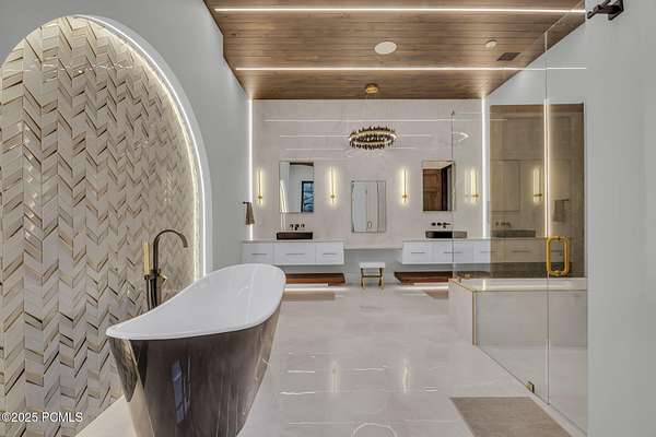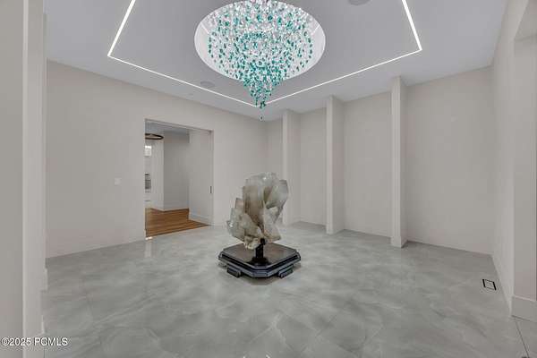 Welcome to one of Utah's most extraordinary private estates, set within the prestigious gated community of Summit Creek in Woodland Hills. Designed by renowned architect Kevin Price through the vision of Real Estate YouTube star Kris Krohn, this masterpiece was created to exceed expectations with limitless potential. The compound is thoughtfully composed of two distinct wings that together offer an unparalleled living and entertaining experience. The 8,500-square-foot private family wing is a stunning retreat in itself, featuring five bedrooms, a gourmet kitchen, a spectacular great room with double-story glass walls framing panoramic mountain vistas, an elegant office, and refined living spaces. This wing also includes a 3-car garage for daily convenience. The recently completed 20,000-square-foot addition is where the estate transcends anything else on the market. Conceived as a place where imagination becomes reality, this wing delivers an almost cinematic level of luxury and flexibility. At its heart is a show-stopping indoor pool with a world-class hydraulic floor system that transforms into a grand ballroom--an engineering marvel inspired by The O Theater at the Bellagio in Las Vegas. An ultra-luxury spa retreat offers a dry sauna, steam room, massage room, float room, and more, creating a true wellness destination at home. The addition also includes a true executive office suite and separate conference room, ready to host everything from corporate meetings to creative collaborations, along with a dedicated racquetball space for sport and recreation, and large chef's kitchen for entertaining.Throughout the space, stunning galleries and walls are designed to showcase art, crystal collections, or installations, giving it the feel of a private museum. For car enthusiasts, a sprawling display garage accommodates 13 cars, complete with lounge areas and elevated presentation platforms perfect for collectors or those seeking to impress. Additional unfinished space