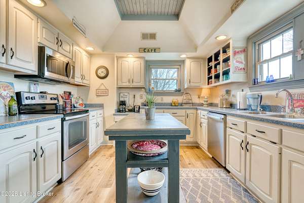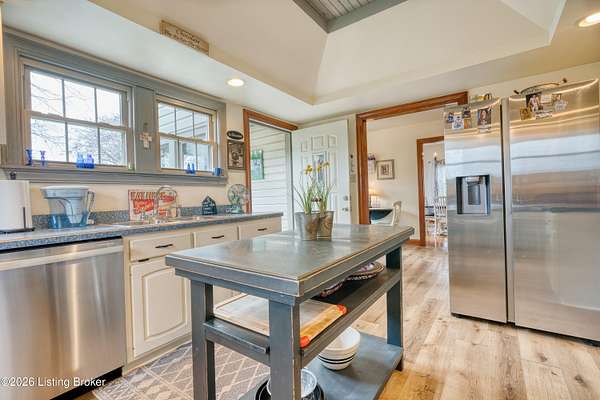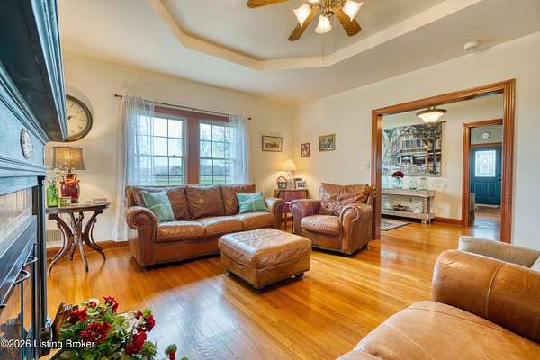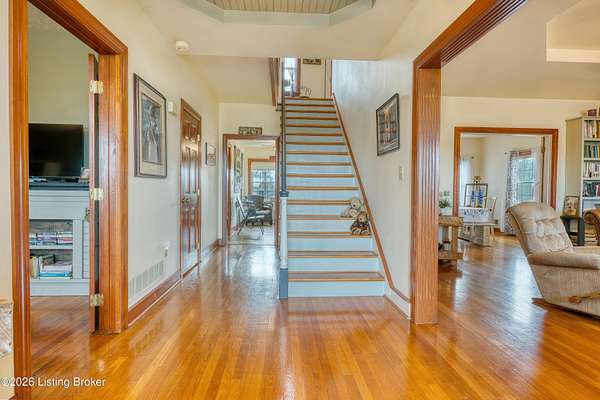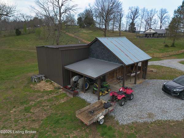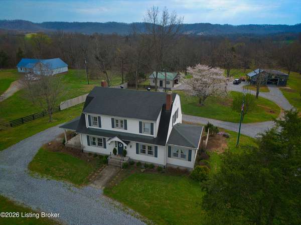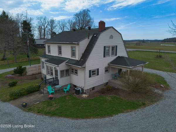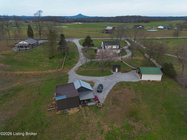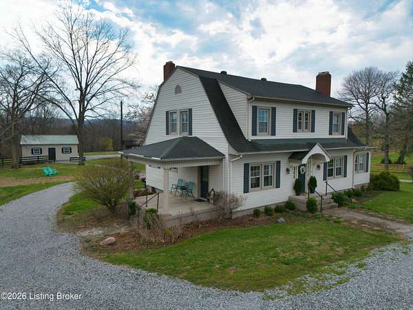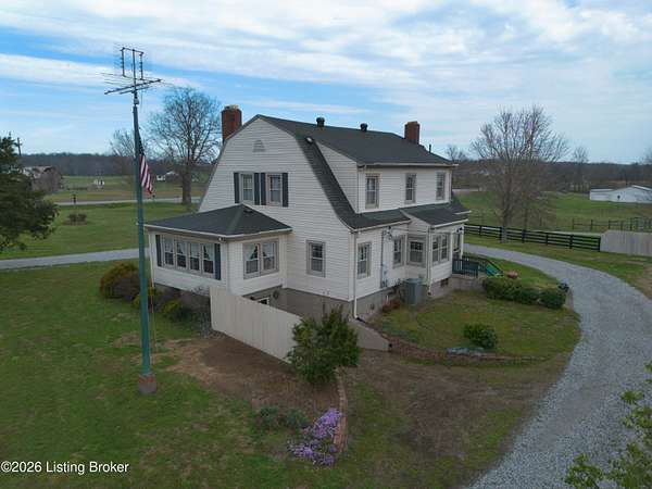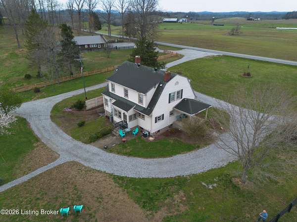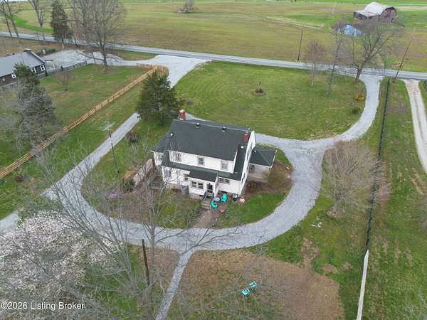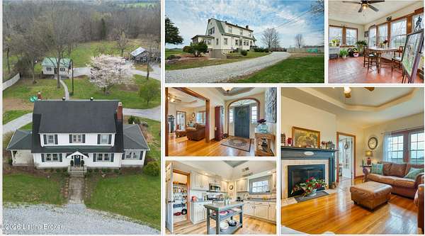 IT JUST DOESN'T GET ANY BETTER! INCREDIBLE VIEWS ALL AROUND AND A BEAUTIFUL FARM HOUSE YOU CAN BE PROUD OF! This breathtaking historic homestead is nestled along the world-famous Bourbon Trail in beautiful Loretto, Kentucky-surrounded by mature trees, lush landscaping, and 6.5 acres of rolling countryside that deliver incredible views as well as unmatched privacy and serenity. At it's heart is a rare original Sears & Roebuck "The Verona" kit home-one of the largest and most luxurious models the company ever produced. These iconic homes are cherished for their superior craftsmanship, timeless appeal, and strong resale value that continues to rise in markets across the country. Enter through the front door into a grand foyer that flows effortlessly to the elegant wooden staircase, instantly welcoming you with old-world charm and architectural grace. Spanning 2,850 square feet, this home features four spacious, oversized bedrooms upstairs-each with huge walk-in closets-along with two full bathrooms (one on the main level and one upstairs) for ultimate convenience. The main level shines with a well-equipped kitchen boasting stainless-steel appliances, abundant cabinetry, and a generous pantry. Step right into the cozy breakfast nook, which opens via French doors to the formal dining room-ideal for intimate family meals, festive gatherings, or quiet moments sipping a fresh cup of coffee. The living room is nothing short of charming, highlighted by a striking fireplace with mantle, dramatic tray ceiling, and original hardwood floors that flow throughout the home. Just off the living room sits a light-filled tiled Sun Room-a perfect place for inspiration or a relaxing peaceful retreat-while a spacious den offers additional flexible living space that makes for the perfect Office offering it's own Full Bathroom. Below, there is a full Partially Finished WALK-OUT Basement complete with laundry facilities, plentiful storage, and Multiple Purpose spaces perfect for a Home Theater, a Gym, and even a Workshop... JUST IMAGINE THE POSSIBILITIES! Throughout, you will find thoughtful original details like hardwood floors, tray ceilings, and even some authentic glass doorknobs that preserve the home's rich heritage. Modern updates add comfort & convenience without compromising the character of this Beautiful Farmhouse or the Attractive Country Setting. Outside, unwind on the covered side porch or spacious back patio while taking in sweeping countryside views that feel worlds away from the hustle & bustle of nearby towns while offering the Total Package in convenience and accessibility. The property also includes impressive outbuildings including a detached 26' x 27' metal garage, a 10x10 storage building, and a small barn which allows for a multitude of Workshop Options. This is more than a home-it's a small business opportunity and an incredible way of life. The possibilities here are truly limitless. Come experience all the charm, history, and potential this one-of-a-kind beauty has to offer. Call today to schedule your private showing before it's gone!