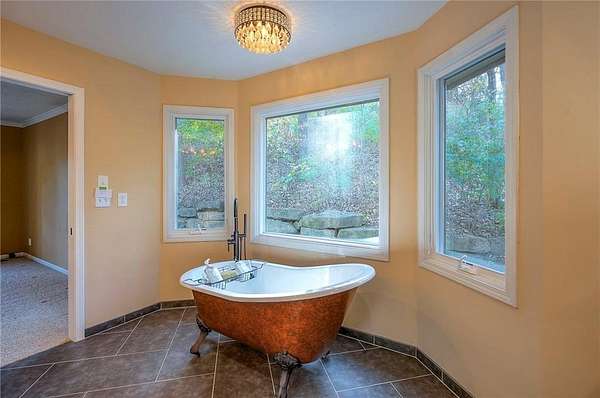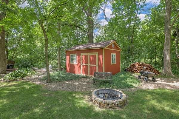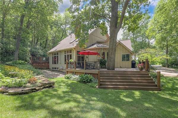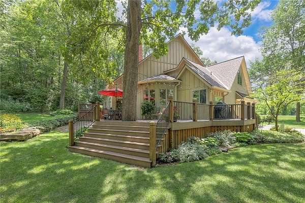 Nestled on nearly 2 acres of serene, wooded privacy, this stunning property offers a true outdoor oasis complete with composite decking, extensive landscaping, and a cozy firepit-perfect for gatherings or quiet evenings under the stars. Step inside to a beautifully updated home where a formal dining room and a living room with a striking wall of windows greet you as you enter the home. The main level office offers privacy and flexibility for work or study. At the heart of the home, the hearth room impresses with soaring 19' vaulted ceilings and a dramatic floor-to-ceiling brick fireplace. The remodeled kitchen features granite countertops and a huge island, seamlessly connecting to a versatile mudroom that also functions as a butler's pantry-complete with abundant cabinetry, a sink, and a beverage refrigerator. Retreat to the main-level primary suite, where private deck access, a claw-foot tub, and a spacious shower create a true spa-like escape. Upstairs, three generously sized bedrooms provide comfort for family and guests alike. The lower level extends the home's functionality with abundant storage and a finished rec room area, perfect for relaxing or entertaining. This home has been meticulously maintained by the owners and has many updates throughout-including fresh paint, trim, gutters, garage doors, new carpet, 3 zones of heating and cooling - main level high-end heatpump, 2nd level and 3rd bedroom over garage (mini-split). So many great featues make this a must see!