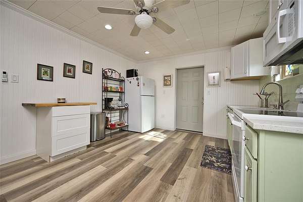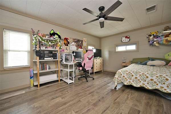 Welcome to this modern farmhouse on 5 scenic acres in Grayson County, offering style, flexibility, and income-producing potential. This fully remodeled property features 4 bedrooms and 4.5 bathrooms. Each bedroom includes its own ensuite bath and walk-in closet. One side of the home functions as a private-entry apartment with its own kitchen, living area, 2 beds, and 2 baths, ideal for multigenerational living or rental income, and currently income-producing with both a long-term tenant and Airbnb. Behind a gated entrance with pipe fencing, the main home showcases warm finishes and smart upgrades, including New Rise Siding, LVP flooring, quartz countertops, granite sinks, smart lighting, and new ceiling fans. The kitchen features a new KitchenAid gas cooktop, French door fridge, double ovens, an RO water filtration system, and a huge walk-in pantry with barn door. The laundry room features a stainless steel sink and matching barn door. A dedicated office offers the perfect space for working from home, while a huge interior storage closet ensures everything has its place. A high efficiency Noritz tankless water heater supplies both kitchens and all bathrooms. Zoned heating and cooling include central HVAC for the main house, mini-split systems for the apartment, and LP-powered emergency heaters in both wings and fan in the attic.