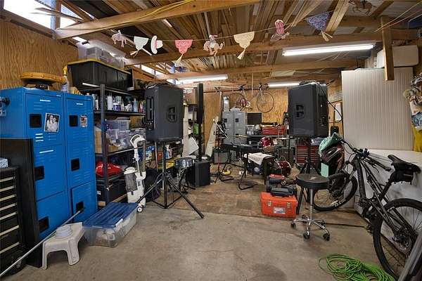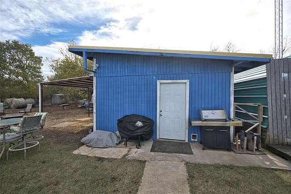 Outdoors, relax in the hot tub with privacy fencing, accessible from the large covered back porch. The land is fenced and cross-fenced for livestock and features a tranquil pond, heavily wooded rear section, and a seasonal creek. Also includes a concrete-floor workshop with electric, RV pad with 50-amp hookup and septic tie-in, multiple chicken coops, firepit lounge, sand base for a future pool, dusk-to-dawn lighting, and a owned high-speed internet tower.