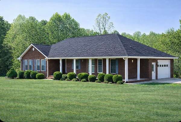 Motivated Sellers! Remarkable 3BR/3BA Custom Built All-Brick home nestled on 3+ acres. 1-level living with professionally finished walk-out basement and 2 attached garages. Quality craftsmanship and very well maintained w/attention to every detail...with lots of extras. All 3 bedrooms are LARGE! Kitchen has all brand new appliances including a gas stove. Master suite contains a large walk-in closet & bathroom with double vanities. Home also features vaulted living room ceiling w/ crown molding. Basement includes a large bedroom, living area, office/playroom and storm shelter under the front porch that can also be used for storage, + another attached over-sized garage. On the back of the home is a large grilling deck w/ a grill that is plumbed in to the natural gas line that remains with the home. Also, option for brand new pedestal washer and dryer to remain with the home. Oh wait there's more... Home has a new central unit and is newly equipped with a Generac home generator and new on demand water heater!
