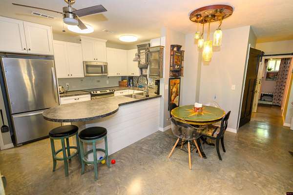 Est $1,907/moUnique, country style energy efficient with geothermal heat pump and AC, 3 bedroom, 2 bath newer home built for the artist or the craft person with attached heated cooled garage and workshop to satisfy any person's hobbies Foam insulated, on 6.51 acres m/l with a wet weather creek, four wheeler trails and an organic garden. Located near the end of a paved country road.
