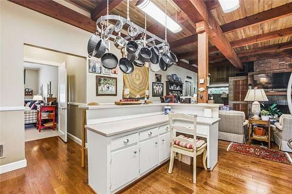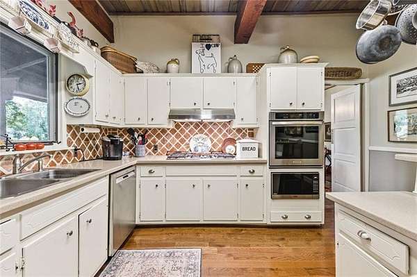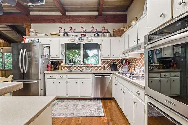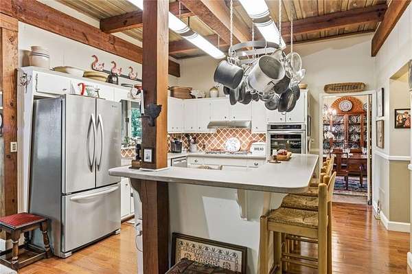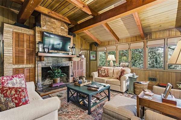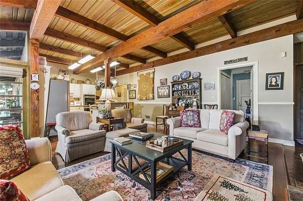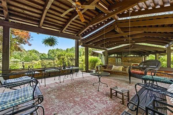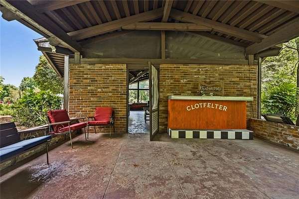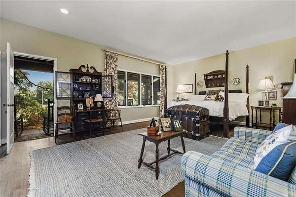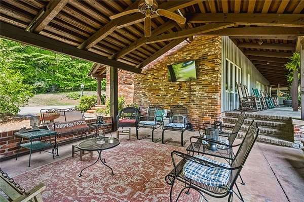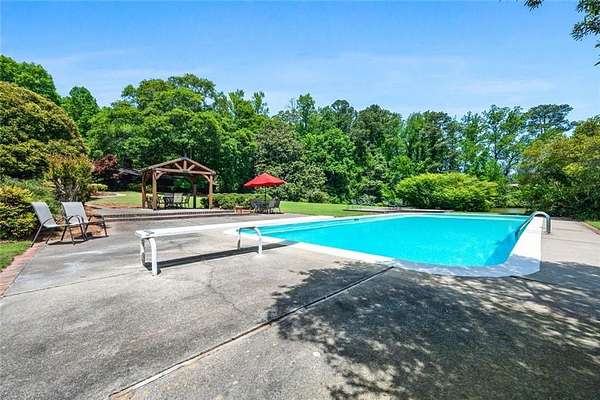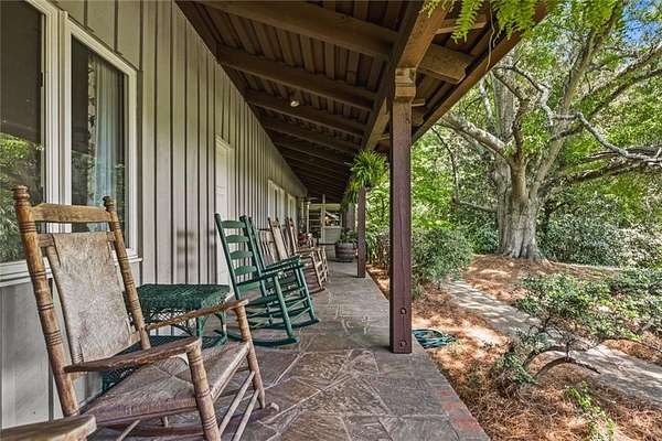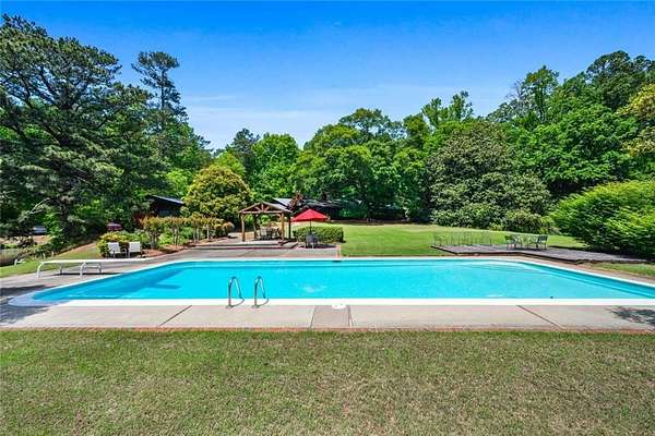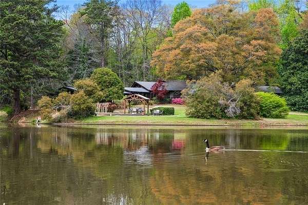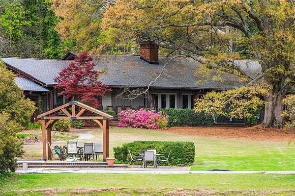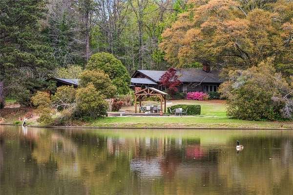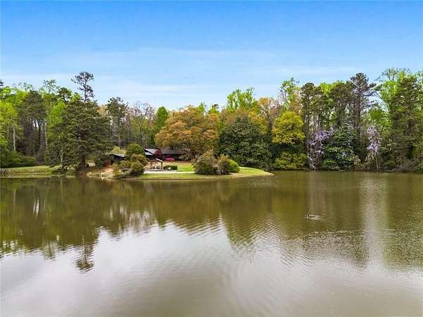Situated on 6.95 private acres, this rare Marietta estate offers a truly special blend of history, charm, and natural beauty, all just approximately 1.5 miles from the heart of Historic Marietta Square. Held within the same family for its entire ownership, the property carries a sense of legacy that is increasingly hard to find. A picturesque private lake anchors the setting, creating a peaceful backdrop that can be enjoyed from multiple vantage points throughout the property. The home itself is rich in character, reflecting its historic roots while offering comfortable everyday living. Featuring 4 bedrooms and 3.5 bathrooms, the layout is both functional and inviting. The kitchen is outfitted with stainless steel appliances and flows naturally into a casual living room, creating an ideal space for everyday gathering. A separate formal living room is positioned off the dining area, offering a more traditional setting for entertaining or quiet conversation. Each space tells a story, with timeless details that add warmth and authenticity throughout. Outdoors, the lifestyle truly shines. A sprawling covered patio extends from the home all the way down to the pool area, creating a seamless connection between indoor and outdoor living. The pool, perfectly positioned overlooking the private lake, provides a stunning setting for relaxing or entertaining, while the cabana offers added convenience with a half bath. Surrounded by mature landscape and expansive acreage, this is a rare opportunity to own a private retreat with close proximity to one of Marietta's most vibrant destinations.