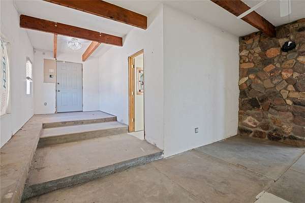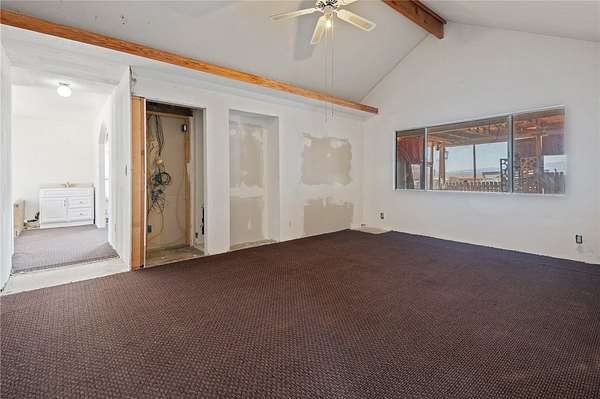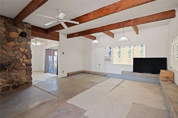 Est $732/moInvestor special on 2 acres this 1,400 sq ft, 1-bedroom, 2-bathroom home offers a unique opportunity. The property features substantial concrete work, an outdoor kitchen, and a covered, enclosed back patio. Inside, you ll find exposed beams, vaulted ceilings, and a garden tub. Full RV hookups with it's own septic. The home is ready for someone with vision, ideal for an investor or handyman ready to rebuild. Seller Financing options with large down payment.