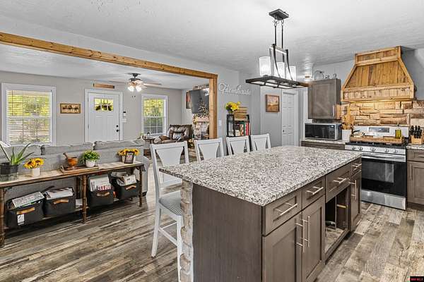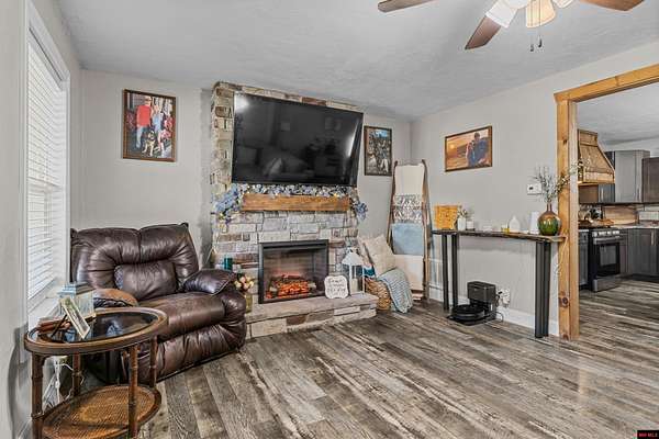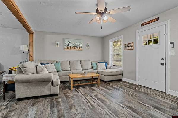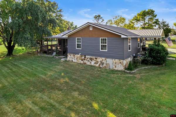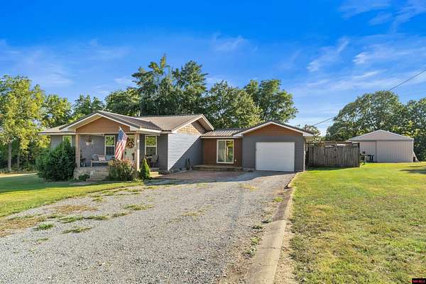 Welcome to this charming 3 bedroom, 2 bath home, boasting 2,124 sq. ft. and nestled on 2.38 acres m/l! No restrictions! Just a mile from Fout Boat Dock on Norfork Lake, perfect for outdoor enthusiasts. This beautifully remodeled home also features inviting outdoor areas, with plenty of seating on the spacious deck and front porch. The combination of modern updates and outdoor charm makes this home an ideal retreat for gatherings and relaxation. Don't miss this gem! Enjoy the convenience of a single-car garage and a spacious 40 x 23 detached garage complete with electric, its own panel, and a workshop area, above storage, featuring large sliding doors for effortless boat access. The mostly flat terrain provides ample room for activities, while recent updates include HVAC's (2021) and a roof (2019-2020). With plenty of storage and an additional 20 x 17 bonus room, this home is designed for comfort and practicality.
