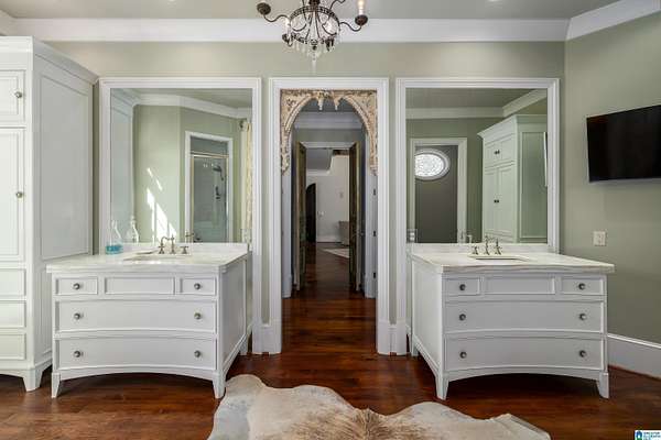 - Central Vacuum, Dressing Room, French Doors, Garden Tub, Linen Closet, Multiple Staircases, Recess Lighting, Safe Room/Storm Cellar, Separate Shower, Separate Vanities, Shared Bath, Sitting Area in Master, Tub/Shower Combo, Walk-In Closets