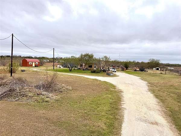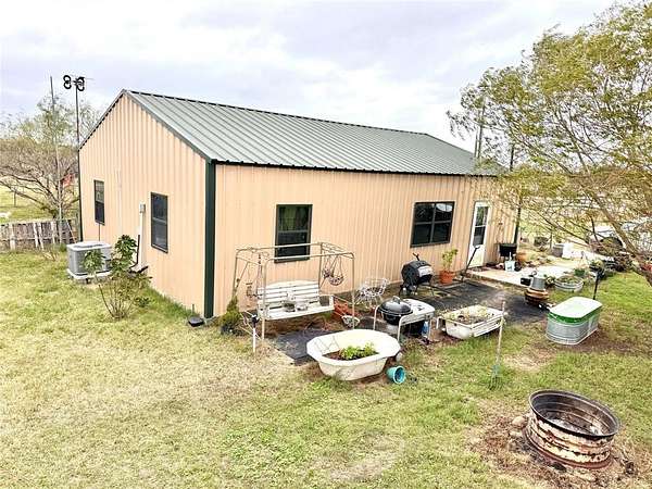 Discover the perfect blend of convenience, space, and versatility on this unrestricted 10-acre property. Whether you envision a commercial venture or prefer to keep it residential, this nearly fully fenced acreage offers endless opportunity--only a short section near the creek needs completion. The land is cross-fenced, and would be suitable for horses, cattle, chickens, goats, and more, and features multiple specialty trees and plants, including peach, fall plums, pecan, wisteria, canas, and rose bushes. Conveniently located next door to the Cowboy Church, you can enjoy access to their arena for roping or riding. A small tank in the front yard even attracts the occasional blue heron, adding a touch of country charm. The full steel building features R-30 insulation in the perimeter walls, double-paned tinted windows, and a cozy wood-burning stove with an electric fan to keep the home warm and inviting. The Carrier HVAC unit is all electric and only about 3 years old. The gas kitchen range conveys, with an easy option to switch to electric. An electric tankless water heater (installed Oct 2025) and a full-size-ready laundry room add everyday practicality. The kitchen also features custom built cabinets with pull out shelves and a lazy suzan for added convenience. Bring your RV or even an 18-wheeler...plenty of room for maneuvering and parking. Some accommodations are set up for an RV between the storage container and fence line. The shipping container, which is believed to be about 40 ft long, conveys with the property, and some additional storage space is available in the attic. Small cabin is negotiable. Conveniently located between Waco, Hillsboro, Corsicana, and Mexia, this property also sits directly across from one of the first data center sites under construction in Hill County, making it possible to walk to work while enjoying country living. Come experience the space, flexibility, and opportunity this unique property offers.