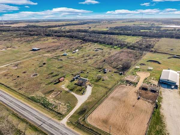 Discover the perfect blend of convenience, space, and versatility on this unrestricted 10-acre property. Whether you envision a commercial venture or prefer to keep it residential, this nearly fully fenced acreage offers endless opportunity—only a short section near the creek needs completion. The land is cross-fenced, and would be suitable for horses, cattle, chickens, goats, and more, and features multiple specialty trees and plants, including peach, fall plums, pecan, wisteria, cannas, and rose bushes. Conveniently located next door to the Cowboy Church, you can enjoy access to their arena for roping or riding. A small tank in the front yard even attracts the occasional blue heron, adding a touch of country charm. The full steel building features R-30 insulation in the perimeter walls, double-paned tinted windows, and a cozy wood-burning stove with an electric fan to keep the home warm and inviting. The Carrier HVAC unit is all electric and only about 3 years old. An electric tankless water heater (installed Oct 2025) and a full-size-ready laundry room add everyday practicality. The kitchen also features custom built cabinets with pull out shelves and a lazy suzan for added convenience. Bring your RV or 18-wheeler...plenty of room for maneuvering and parking. Some accommodations are set up for an RV between the storage container and fence line. The shipping container, which is believed to be about 40 ft long, conveys with the property, and some additional storage space is available in the attic. Small cabin is sold and does not convey. Conveniently located between Waco, Hillsboro, Corsicana, and Mexia, this property also sits directly across from one of the first data center sites under construction in Hill County, making it possible to walk to work while enjoying country living. Come experience the space, flexibility, and opportunity this unique property offers.