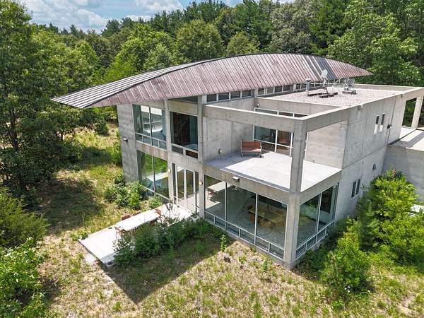 Step into a one-of-a-kind architectural treasure, the exclusive U.S. masterpiece crafted by world-renowned architect Edward Suzuki, nestled just minutes from the prestigious Culver Academy--Indiana's #1 ranked Private College Prep Academy--and the serene Lake Maxinkuckee, the state's second-largest natural spring-fed lake. Spanning over 55 acres and seamlessly adjoining 120 acres of The Nature Conservancy's pristine Forest Preserve, assuring you complete privacy. This lavish retreat offers an unrivaled sanctuary for affluent nature enthusiasts and hunters seeking the epitome of seclusion. This four-bedroom, seven-bath concrete enforced with copper roof estate boasts over 7,000 square feet of living space, featuring an expansive open-floor plan with vaulted ceilings, where 14' high retractable glass doors unveil a luxurious indoor heated pool, merging indoor elegance with outdoor splendor. The primary en suite captivates with a 180-degree panoramic view, while commercial-grade glass floods the home with natural light, complemented by sleek 3/4" thick Portuguese limestone and granite flooring. Powered by dual 200-amp panels, this concrete fortress is a tech haven for discerning business moguls. Enjoy the convenience of a bedroom with a full bath on the main floor, an elevator shaft ready for the equipment accessing all 3 levels, and a four and a half car heated garage for your luxury vehicles. Each bedroom has a dedicated heating and air-conditioning system for total individual climate control. Believe it or not, this modern marvel sits on Duneland surrounded by cactus, thriving wildlife--deer, wild turkeys, rare fritillary butterflies--a true paradise for the elite. Conveniently located within driving distance of Chicago (approximately 1 hour 20 min) and Indianapolis (about 2 hours), this hidden gem offers both accessibility and exclusivity. Embrace a lifestyle of luxury and nature's grandeur--schedule your private tour today.