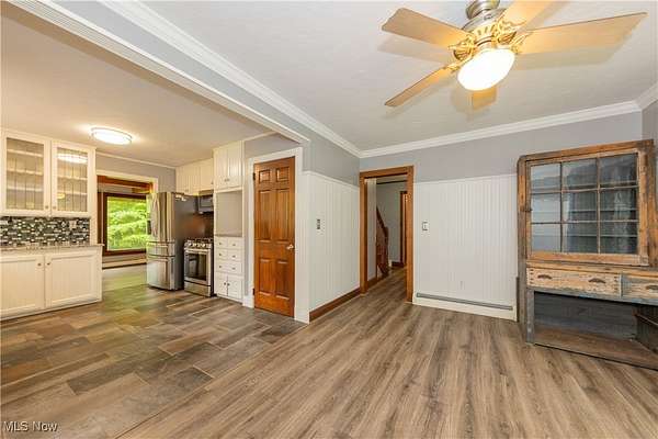 Welcome to your new home in the heart of Chagrin Falls! This beautifully maintained and updated rental offers the perfect blend of comfort, space, and location. Nestled on a quiet, tree-lined street, 8693 E Craig Drive features four spacious bedrooms, three full bathrooms, and a versatile layout ideal for families, professionals, or those who love to entertain. The first floor offers open concept Living and Dining areas, a fully equipped Kitchen with modern appliances and ample cabinet space, and a cozy Family Room with stone fireplace & beamed ceilings. Enjoy gorgeous views and an abundance of natural light from plenty of the large windows throughout. Three bedrooms, one of which has its own ensuite full bathroom, and a separate full hall bathroom complete the main level. Upstairs you will find the fourth bedroom, with a large private deck that overlooks the parklike backyard, along with the third full bathroom. The unfinished basement provides additional storage space, room for your home gym, or other hobbies. The laundry room is located in the basement, and a washer and dryer are included. Located in a sought-after neighborhood within top-rated school districts, and just minutes from downtown Chagrin Falls, where you'll enjoy charming shops, restaurants, parks, and community events year-round. Move-in ready and available for immediate occupancy - don't miss this opportunity to live in one of Northeast Ohio's most beloved communities!