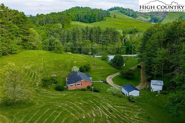 Charming Mini Farm with Endless Possibilities! Welcome to your peaceful retreat in the beautiful Laurel Springs community in eastern Ashe County. This well-maintained cottage/ranch-style home sits on over 3 acres of land, offering privacy, serenity, and a true taste of country living. Tucked back from the main road, this charming home provides the perfect blend of comfort and functionality. Inside, you'll find beautiful hardwood flooring in the bedrooms, with hardwood also located under the carpet in the living room--ideal if you prefer hardwood throughout. A new mini-split system was installed in fall 2024 and serves as the home's efficient heating and cooling source. The layout includes two traditional bedrooms, plus a versatile third room that can be used as a guest room, home office, or cozy sitting room. The laundry room/ mud room off the kitchen does not have a heat vent so was not included in the heated SF. This home is being sold furnished, including appliances--just bring your suitcase and move right in! The property includes a large barn for storage or livestock, a detached carport, a cellar with additional storage above and open pasture, suitable for horses, livestock, or crops, established apple trees, a peach tree, and grapevines. There are also multiple building sites, including a cleared knoll that offers potential long-range views--suitable for a second home or guest cottage.