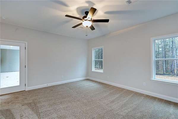 Welcome home to the Carter floorplan, a spacious one level 4-bedroom 3 FULL bathrooms home. Walk up to the front porch to enter the Foyer, Separate Dining Room or Flex Room, Large Family Room with an electric fireplace that accesses the rear covered porch. Open concept kitchen with an island, breakfast area, stylish cabinetry, granite countertops, modern appliances. A large relaxing Primary bedroom with Ensuite with double vanities, separate tub & shower, 2 WIC. Laundry Room. Three secondary bedrooms, one of them has its own private bath. And a Hall bathroom with double vanities. Double car garage. LVP floors in living spaces and laundry room, carpet in all bedrooms and tile in all full bathrooms. Builder is offering $5000 in incentives to buyer; and if you use a preferred lender additional concession will apply.