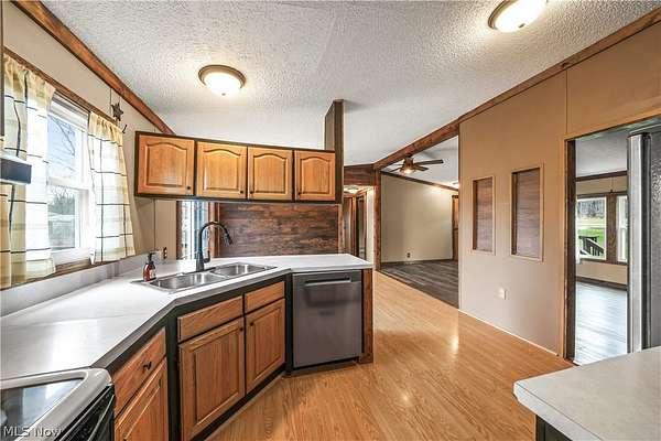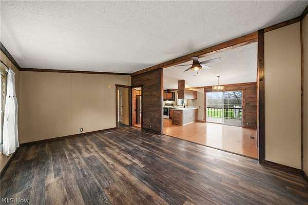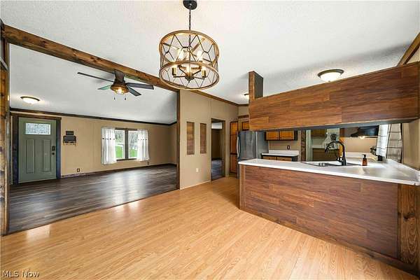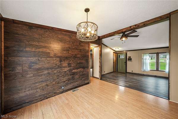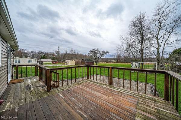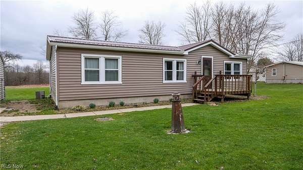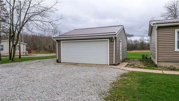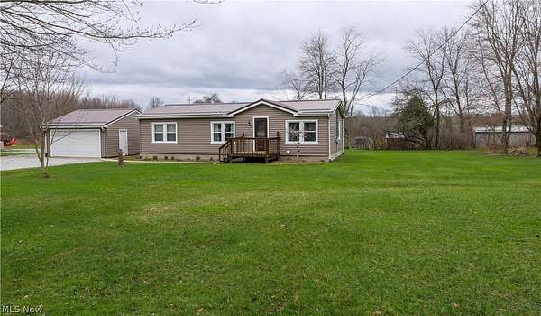 Welcome to this move-in ready home in the desirable James A. Garfield School District, offering the perfect blend of affordable living, modern updates, and peaceful country setting on 1.6 acres. This well-maintained property features low-cost utilities and numerous big-ticket updates, including new windows, siding, and roof, giving buyers peace of mind from day one. Step inside to a spacious main living area with vaulted ceilings that flows seamlessly into the dining space and a stylish, updated kitchen highlighted by a beautiful wood accent wall for a warm, rustic feel and updated lighting throughout. The thoughtfully designed layout offers privacy with a primary suite on one side, complete with a full bathroom, generous counter space, and a large walk-in closet, while the opposite side features two additional bedrooms and a second full bath. Enjoy outdoor living with new front and back porches, a large backyard, gravel patio, and raised flower beds, perfect for relaxing or entertaining. The property also includes a two-car detached garage with electric and a concrete floor, ideal for storage, hobbies, or workspace. If you're looking for a turn-key home with land, updates, and value in Garrettsville, this one is ready for you to move right in and enjoy.