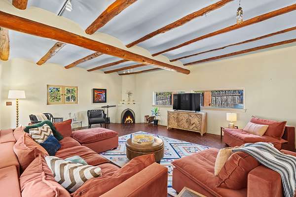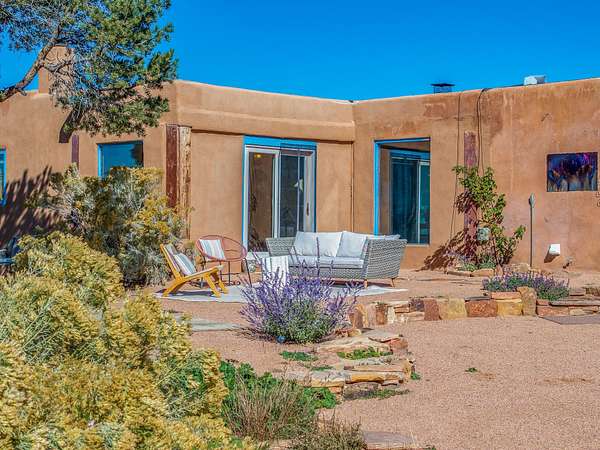 Experience tranquility in this enchanting Arroyo Hondo property featuring a beautiful three bedroom main home and a separate one bedroom casita complete with its own kitchen and bath. The home's flowing layout creates a sense of balance and connection throughout with the application of harmonius Feng Shui principles. The spacious open kitchen with a dining area and wood-burning fireplace serves as the heart of the home, an inviting space to gather and enjoy. Two bedrooms and two bathrooms are conveniently located just off the kitchen. A large family room with two additional fireplaces opens to flexible living space, ideal for an office or studio. The private primary suite offers a serene retreat with a full bath and quiet separation from the main living areas. Step outside to take in breathtaking surrounding mountain views from multiple outdoor patios and sitting areas, perfect for relaxation or entertaining. The property is horse friendly and includes a new heated yurt, ideal for creative pursuits or guest accommodations. A truly magical property awaits you just ten minutes from downtown Santa Fe.