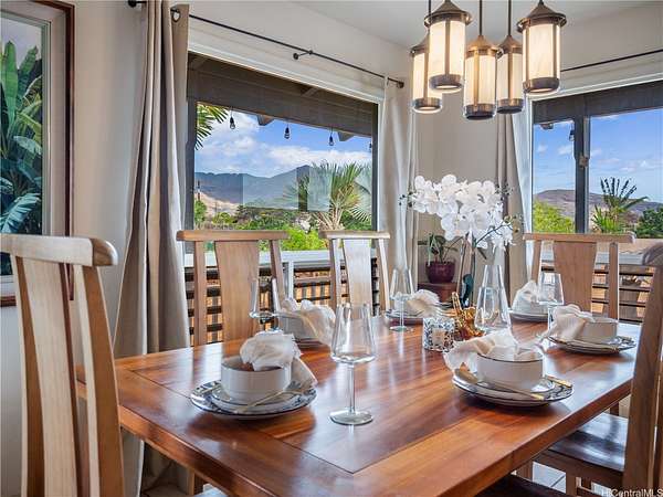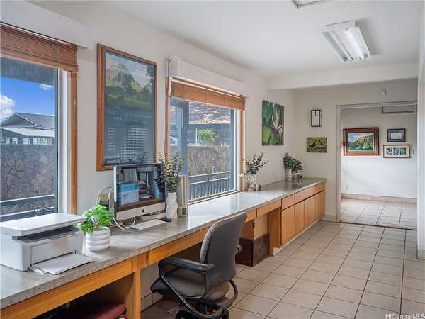 Retreat Agricultural Oasis on this massive 2.44-acre estate! This 5-bedroom, 2.5-bath valley home with ocean & mountain views can be yours. Rare opportunity for business or living, this property offers nearly 3,000 sq. ft. of living space, surrounded by a quintessential covered lanai reminiscent of Old Hawaii plantation living. Behind the electric gate of the fully fenced custom stone wall a palm-lined, expansive driveway leads to the home. Sustainable agricultural dream, with multiple fruiting trees, aquaponics area, & zoning for income-producing opportunity. Two living & dining areas flow into flexible rooms that can serve as a private office or guest rooms. The spacious upstairs primary suite boasts vaulted ceilings & a picture window framing the lush property, a large en-suite bath, second living room & an office. Additional bedrooms downstairs are well-suited for family, guests, or creative uses. Just minutes from the beach, surf breaks, hiking trails, Tamura's Market, and a short drive to KoOlina and Kapolei, this rare property combines privacy, convenience, and the charm of country agricultural living. Come experience paradise behind the gates of 87-251 Paakea Road today!