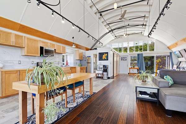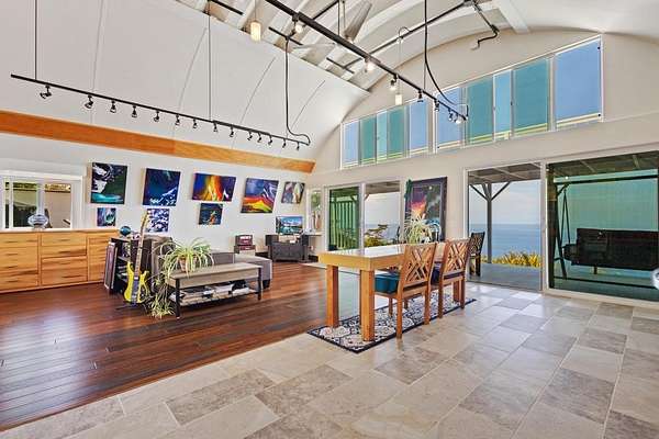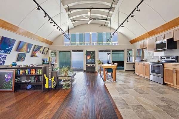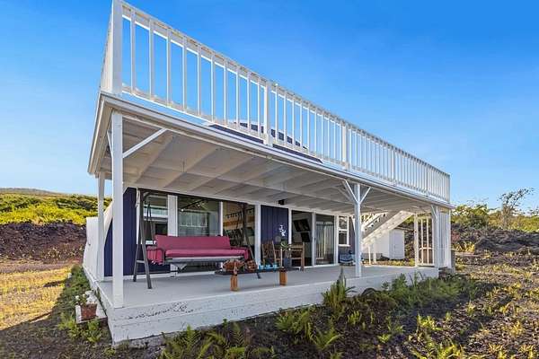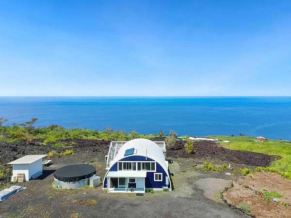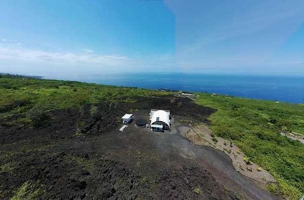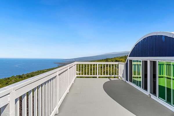 OPEN & AIRY DOME/QUONSET HUT ON 5 ACRES W/ PANORAMIC VIEWS! Located in the Kona Coffee belt. Green upper lot with roughed in road to a flat building area for your dream home w/surf & sunset views. Rich soil for your orchard, raise gardens and Kona Coffee & more for a sustainable lifestyle. Deeded access to a black sand beach. Gated private driveway to a steel frame, well built artist dome home on 5 usable acres. Open & airy with high ceilings, high windows to bring in the natural light. Living area features rich bamboo flooring, drop lights & minimalist track lighting. Spacious area to accommodate a king size bed. Custom barn door closet. Enjoy your outdoor living on the large lanai that stretches across the front of the home. Light & bright kitchen with backsplash, ceramic tile counters & a bay window with a view. Stainless steel appliances, convection oven and microwave hood. Tiled flooring in kitchen and dining area. East and west sliders and windows for flow through breezes. A full bath with blocked glass, custom tiled walk-in shower with pulse massage & rain fixture. White cabinet with solid top & backsplash. Stargaze from your upper lanai or enjoy the big blue ocean views that extend to Kona. Fresh paint & well-kept grounds. High end front load, efficient Washer & heat pump dryer. 10,000 water tank with 4 stage filtration and UV light treatment. Available cable, hi speed satellite. Near beaches to swim, snorkel, paddle, kayak. Approximately 15 to 20 minutes to Restaurants, 2 post offices, Kealakekua Ranch Center, hardware store, Sunday Open Market and Kona Community Hospital. 25 gallons, 2 coats of gaco roof coating/sealant over entire building Noni Kona gold mango Meyers lemon Mamake trees for popular great tea Madagascar brown fig Yellow watermelon Hawaiian apple banana grove Bell pepper Thornless blackberry bushes Raspberry bushes Pearl tomatoes