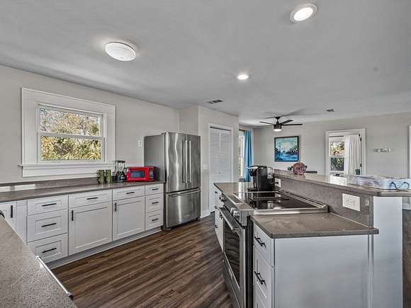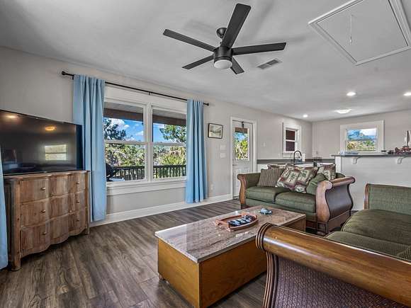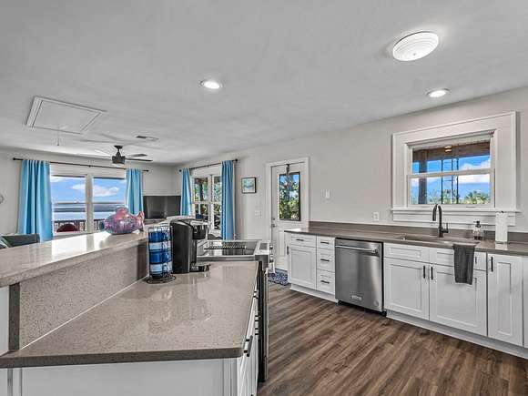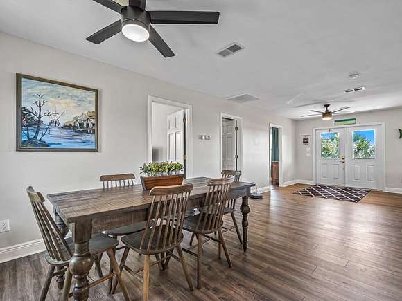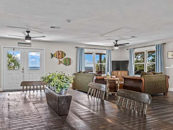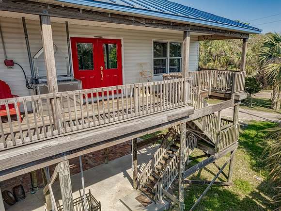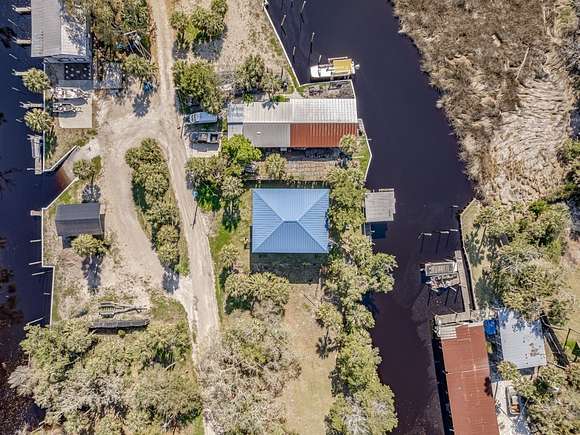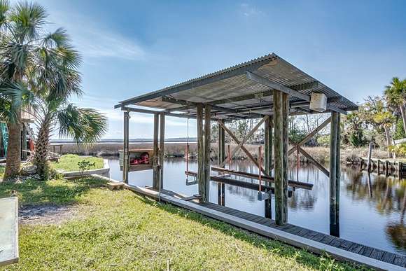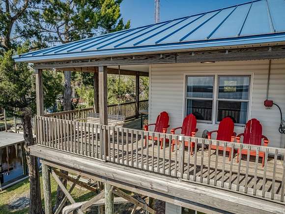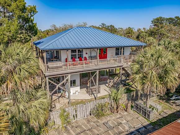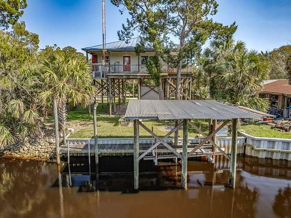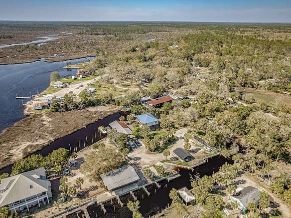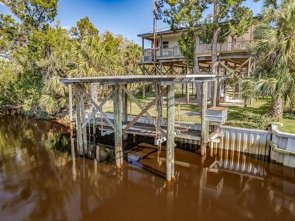 Imagine enjoying life in picturesque Spring Creek, Florida! You will love the wraparound porch with breathtaking views of the bay and the best sunsets around. Double front doors lead into the light and bright open concept 2000-build home with combo dining/living, perfect for gathering with friends and family. FURNISHED and turnkey, 1748 sq ft under metal roof, vinyl siding, dumb waiter, updated kitchen with SS appliances, shiplap-front bar, granite countertops, luxury vinyl plank flooring, 2 bedrooms and one bath, washer-dryer hookup. Fish cleaning station off the kitchen makes for easy meal prep after a day on the water. Outdoor space features a covered boat shed with 6000-pound lift, aluminum seawall and riprap on a spring fed canal which leads to the open Gulf waters. This beautiful home is a wonderful weekend getaway with rental potential or would be a lovely full-time home. Quiet and serene, with opportunities for fishing, birding, relaxing and enjoying simple pleasures. Don't miss this great opportunity to own a piece of Real Florida.