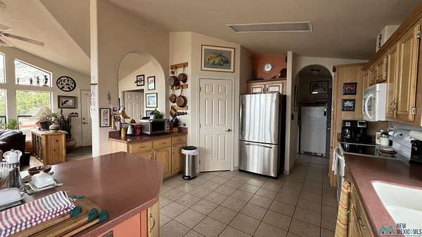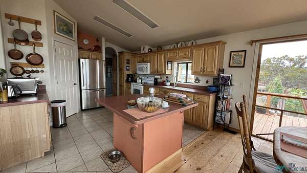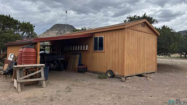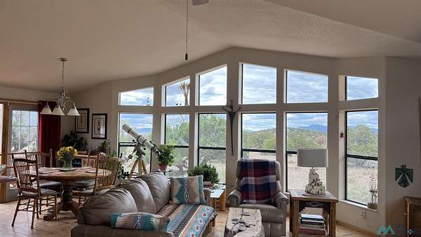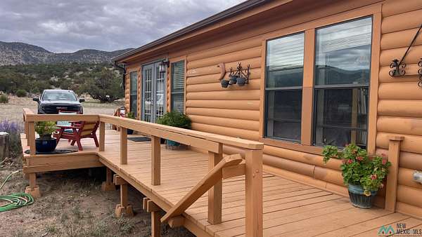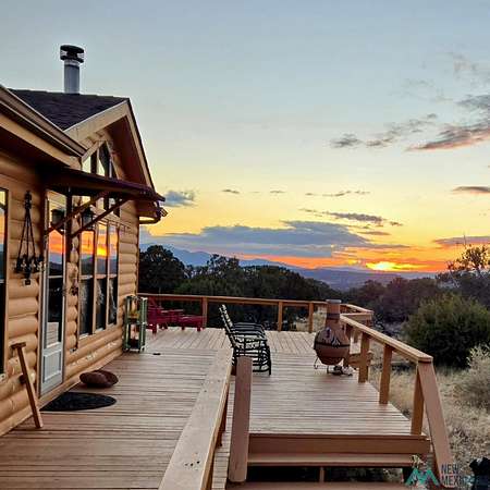 Beautiful Home! Spectacular Views! Near Datil, NM This custom-designed Champion Eagle home offers three bedrooms and two bathrooms, featuring an extended bay window that provides exceptional mountain views, as well as an expansive owner's suite. Situated on a 15-acre fenced parcel composed of three lots, the log-sided residence includes two decks ideal for observing sunrises, sunsets, and local wildlife. The spacious kitchen is equipped with an island and sizable pantry, complemented by extra-large windows throughout the home. Central forced-air heating and a soapstone wood stove in the main room ensure year-round comfort. The third bedroom could easily be an office or media room. Additional amenities include a private well with 3,000-gallon water storage, two 8x10 storage sheds, a large garage/workshop, an 8x8 garden shed, and a generously sized fenced garden. The Landowners Association takes care of subdivision road maintenance and There is access to a community parcel with picnic facilities. Residents enjoy a supportive neighborhood environment. Essential services such as a post office, gas station, restaurant, and general store are available in nearby Datil, while hospital, veterinary care, and additional shopping options are located in Socorro, NM.