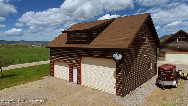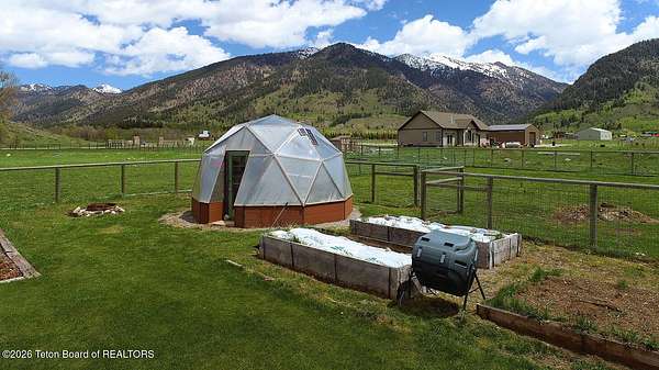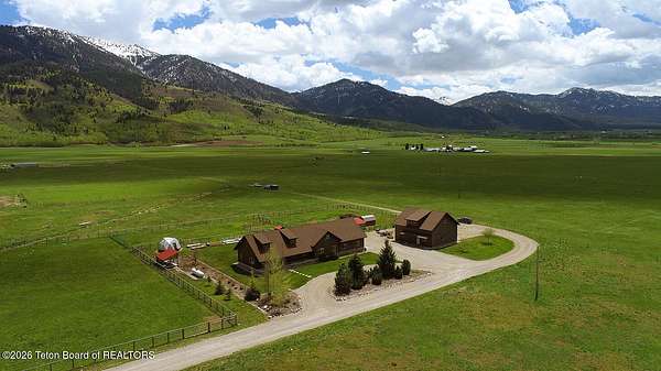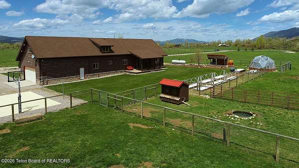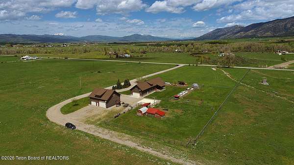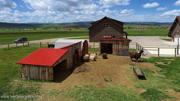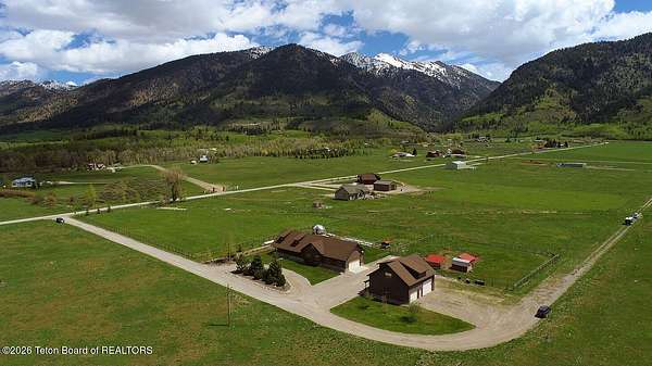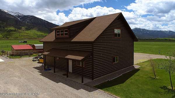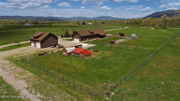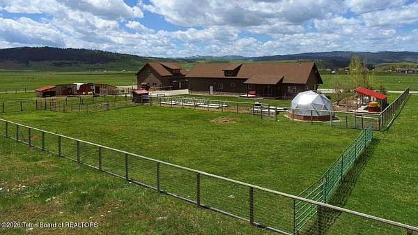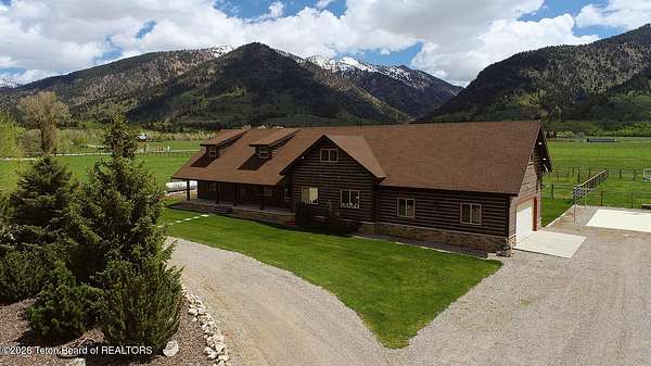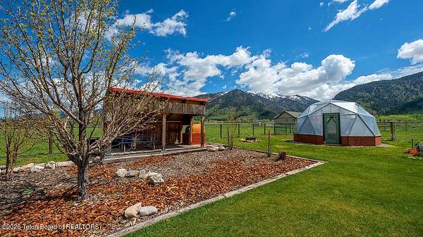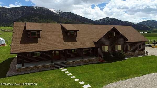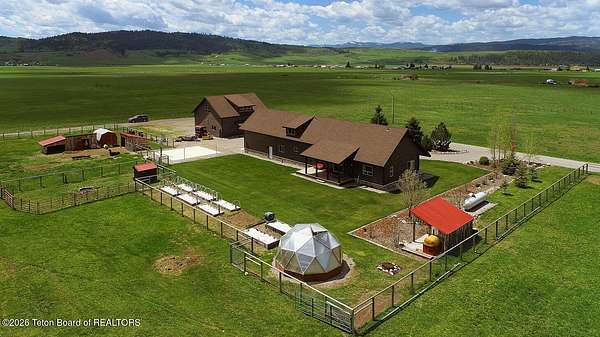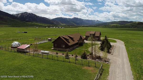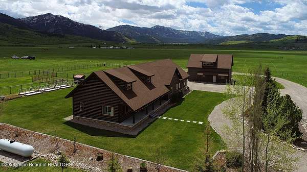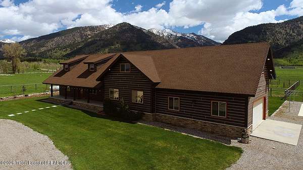 Nestled just a mile from the serene beauty of Strawberry Canyon and the lush forest in Bedford, this charming log home offers the Wyoming lifestyle. Sitting on 3.9 acres, this Gentleman's Ranch is perfectly tailored for animal lovers, complete with a well-designed chicken coop, hay storage, and even a seasonal ditch that graces the east side of the property. With both irrigation and Bedford City water, the land is as practical as it is picturesque. Step into a home that's been meticulously cared for, where rustic charm meets modern comfort. The kitchen boasts stunning granite countertops, a coveted butler's pantry, and a layout designed with entertaining in mind. Heated floors in the bathrooms provide a cozy touch, while the cathedral ceiling in the great room and 9-foot walls throughout create an airy, inviting atmosphere. Natural light floods every corner, showcasing the home's thoughtful design. Outdoor living here is simply unmatched. The property features a greenhouse and a well-maintained garden, perfectly complemented by a picnic pavilion and a wood-fired pizza oven--ideal for gatherings under the Wyoming sky. Take in breathtaking sunsets and watch local wildlife from the comfort of the expansive covered decks. And for those seeking adventure, you're only a short horse or ATV ride away from the forest. Additional highlights include a detached garage with RV parking and living quarters above, plus an array of outbuildings to meet all your storage or hobby needs. The property's mature apple and pear trees produce abundantly, adding charm and practicality to this idyllic setting.