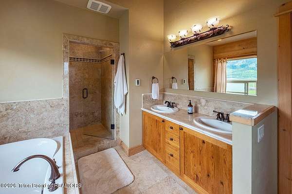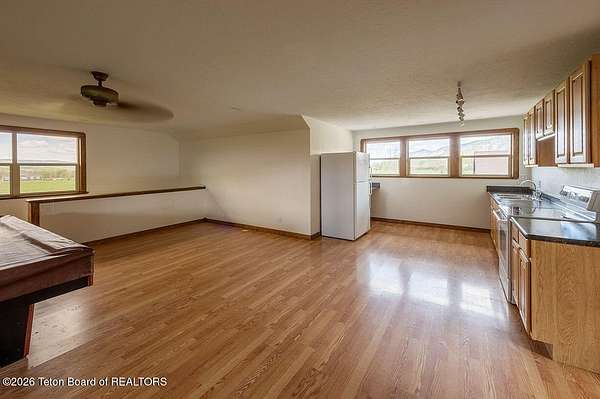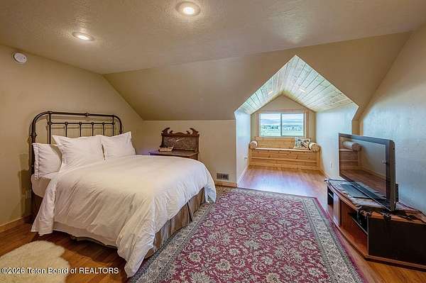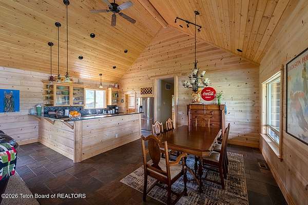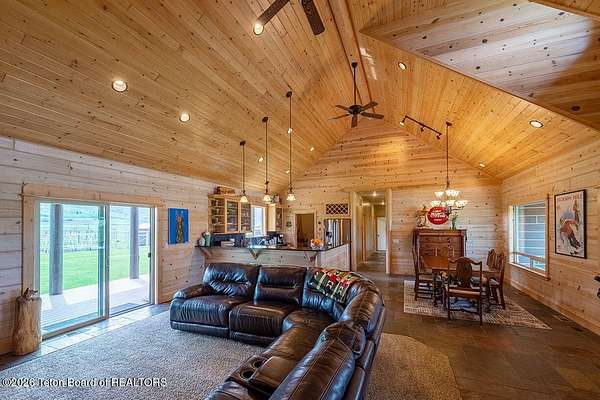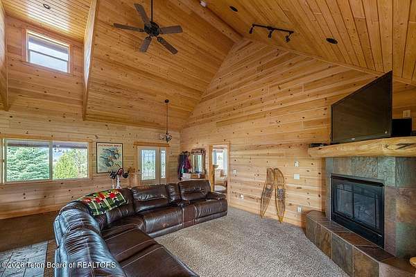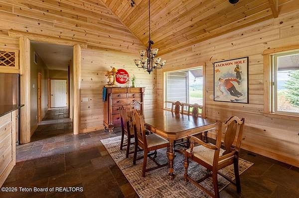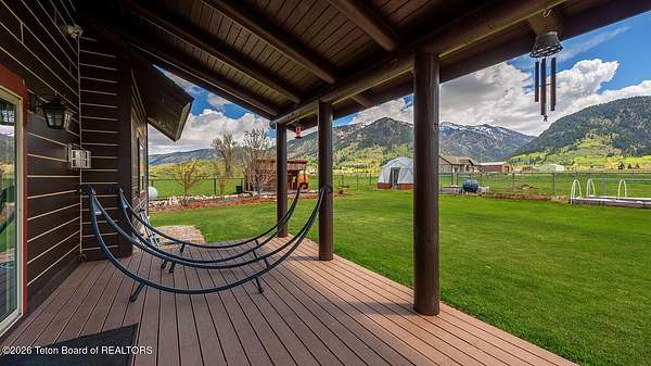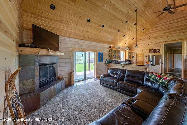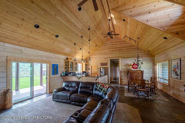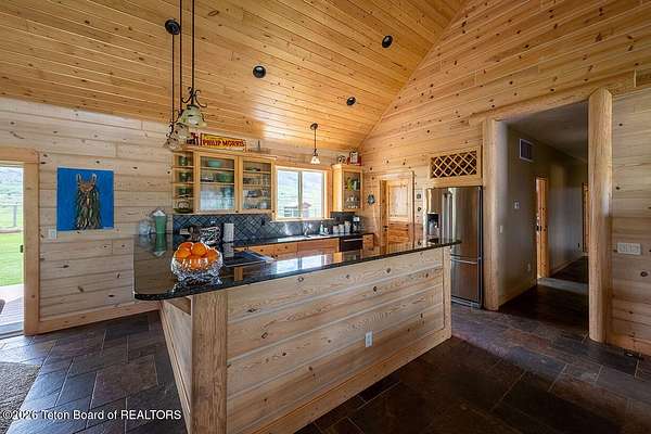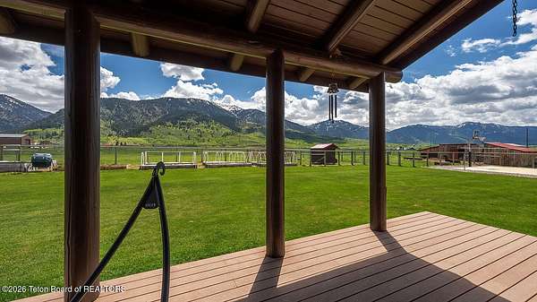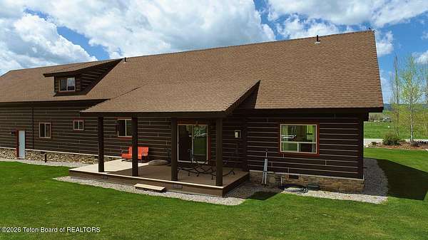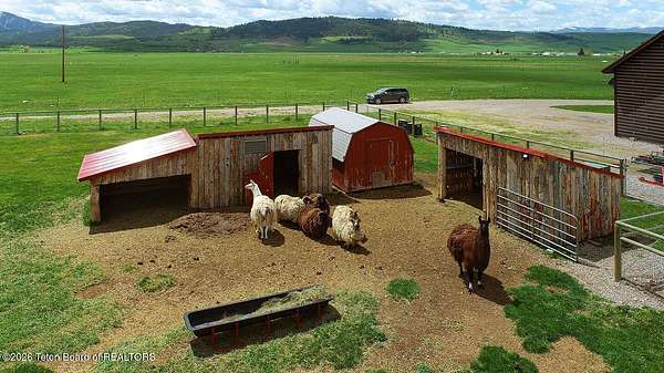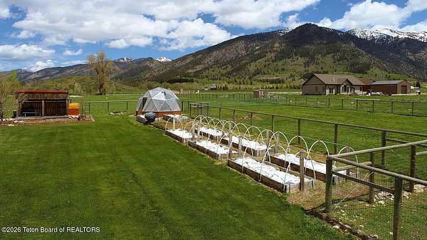 Nestled just a mile from the serene beauty of Strawberry Canyon and the lush forest in Bedford, this charming log home offers the Wyoming lifestyle. Sitting on 3.9 acres, this Gentleman's Ranch is perfectly tailored for animal lovers, complete with a well-designed chicken coop, hay storage, and even a seasonal ditch that graces the east side of the property. With both irrigation and Bedford City water, the land is as practical as it is picturesque. Step into a home that's been meticulously cared for, where rustic charm meets modern comfort. The kitchen boasts stunning granite countertops, a coveted butler's pantry, and a layout designed with entertaining in mind. Heated floors in the bathrooms provide a cozy touch, while the cathedral ceiling in the great room and 9-foot walls throughout create an airy, inviting atmosphere. Natural light floods every corner, showcasing the home's thoughtful design. Outdoor living here is simply unmatched. The property features a greenhouse and a well-maintained garden, perfectly complemented by a picnic pavilion and a wood-fired pizza oven--ideal for gatherings under the Wyoming sky. Take in breathtaking sunsets and watch local wildlife from the comfort of the expansive covered decks. And for those seeking adventure, you're only a short horse or ATV ride away from the forest. Additional highlights include a detached garage with RV parking and living quarters above, plus an array of outbuildings to meet all your storage or hobby needs. The property's mature apple and pear trees produce abundantly, adding charm and practicality to this idyllic setting.