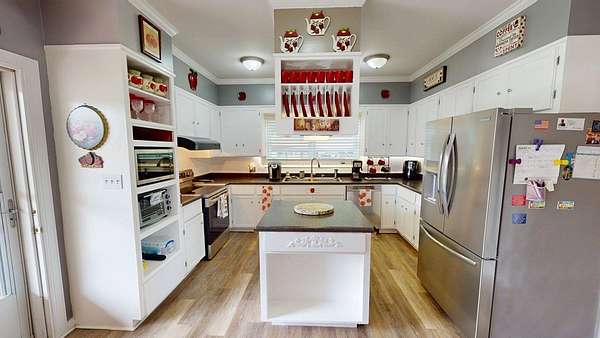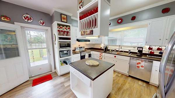 If you have been looking for the PERFECT home on the water, look no further than this hidden gem on Ells Creek Dr., Meigs, GA! This truly unique 3BR/2Bath home is 2,908 sq.ft. of wonderful open living space. The huge living room features big open windows and lots of room for furniture and loved ones coming to visit. The kitchen (appliances included) and dining area are perfect for meals big and small, and there is also a formal dining room for guests. There is a big game room with sliding glass door, a custom pantry, a huge primary suite with office and bathroom, two other big bedrooms, and a nice entrance foyer, all updated with recent renovations to the house. The updates to this home are unbelievable! New water heater, new roof in 2018, new windows, updated fuse box, cleaned vents and improved HVAC in 2025. 39 solar panels were installed in 2021, and enhanced 240 hookups have been added. Outside, you will LOVE the covered patio and fenced area overlooking the beautiful 14-acre pond. There is also a fenced 50'x31' garden area, fruit and pecan trees, utility shed, 2-car garage and MORE! Call your favorite agent TODAY for a closer look at this magnificent property! Click here for a virtual tour: https://my.matterport.com/show/?m=52Ab8daLoNp&mls=1