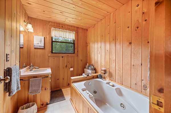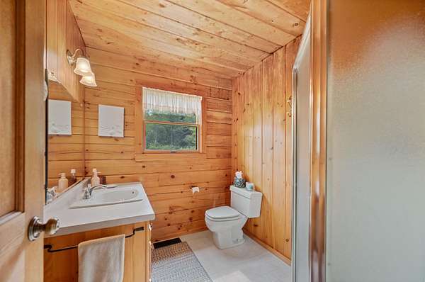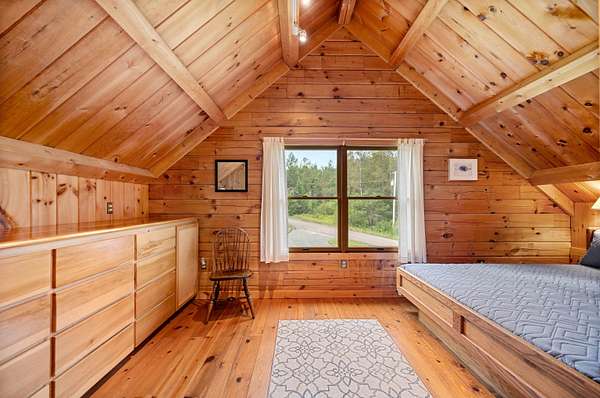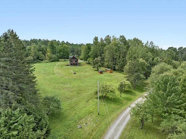 This charming 3-bedroom, 2-bathroom log home, nestled high on a 39+-acre lot and set back from the road, is now available. Overlooking Flagg Pond, the views from the open covered porch are truly breathtaking. The acreage allows for a subdivision off from the 39 +- for two 5 acre lots with major road access, lots are partially cleared for homes. Build on them for extended family or sell them to others wanting their own piece of Vermont. Lots are roughly staked off but not exact. The existing spacious three-level home offers ample room to enjoy. The main level features two bedrooms, a full bathroom, and the kitchen and living room. Enjoy the soapstone wood stove on cool winter nights from the living room sofa with a hand-crafted hearth made of stone. French doors off the living room open onto the covered open deck. Upstairs, you'll find an additional primary bedroom with built ins, a private bathroom and vaulted ceilings, offering serene views of the lawn and pond below. The basement partially finished provides a versatile work area, a den/studio space, and a convenient laundry room. Imagine listening to the loons from the deck while enjoying your morning coffee or afternoon drink. This home has been meticulously maintained by its original owners and is sure to impress. The property includes 39 acres of mostly wooded land with potential for subdivision of the two partially cleared 5 acre lots with road frontage and access to power. Call now!