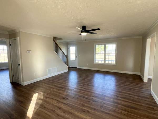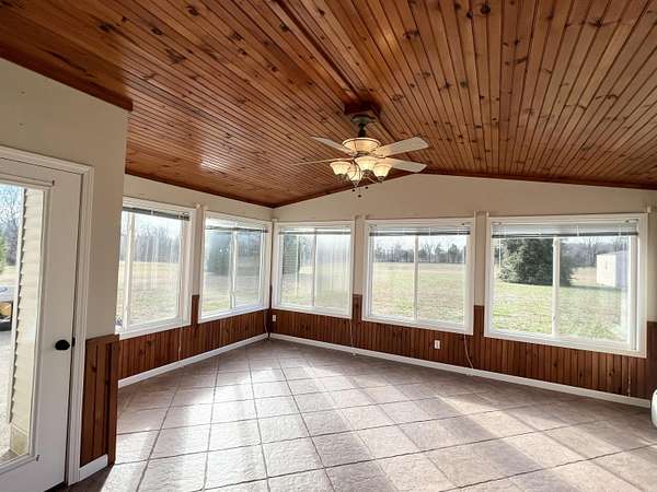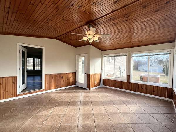 Fantastic single-family home on 1.5 acres, freshly updated and conveniently located in Russell Springs. This move-in-ready property offers the perfect blend of space, comfort, and modern updates-ideal as a forever home for those seeking both privacy and accessibility. The main level features a spacious living room centered around a cozy gas fireplace with a brand-new mantel, creating a welcoming space to relax or gather with guests. Just off the living room is a truly unique highlight: a 400 sq. ft. four-season room. This heated addition boasts gorgeous windows that frame peaceful backyard views, beautiful wood ceilings, and tiled flooring. It seamlessly expands the living space and offers an exceptional area for entertaining, relaxing year-round, or enjoying the surrounding outdoor scenery. The home includes three large bedrooms and two full bathrooms, thoughtfully laid out for functionality and comfort. The primary suite is conveniently located on the main floor, providing privacy and ease of living, while two generously sized bedrooms and a second full bathroom are located upstairs-perfect for family, guests, or flexible use as home office space. Additional features include a separate kitchen and dining area, a dedicated utility room, and an oversized attached two-car garage with ample room for storage or workshop needs. Recent updates throughout the home ensure modern appeal and peace of mind, including a new wooden front door, all new flooring, fresh paint, updated lighting, a completely remodeled kitchen, and beautifully updated bathrooms with new tile, vanities, and a tiled shower in the primary suite. With its expansive yard, stylish updates, and desirable location, this property offers space to grow, entertain, and enjoy everyday living-both indoors and out.