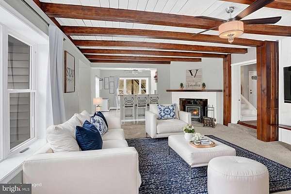 - Additional Stairway, Breakfast Area, Built-Ins, Ceiling Fan(s), Combination Kitchen/Dining, Combination Kitchen/Living, Eat-In Kitchen, Entry Level Bedroom, Open Floor Plan, Table Space Kitchen, Window Treatments, Wood Floors, Wood Stove