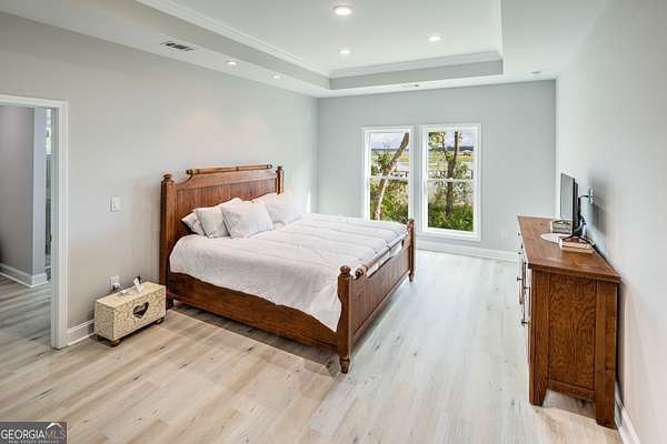 - Beamed Ceilings, Double Vanity, High Ceilings, Master On Main Level, Roommate Plan, Separate Shower, Split Bedroom Plan, Tile Bath, Tray Ceiling(s), Vaulted Ceiling(s), Walk-In Closet(s)